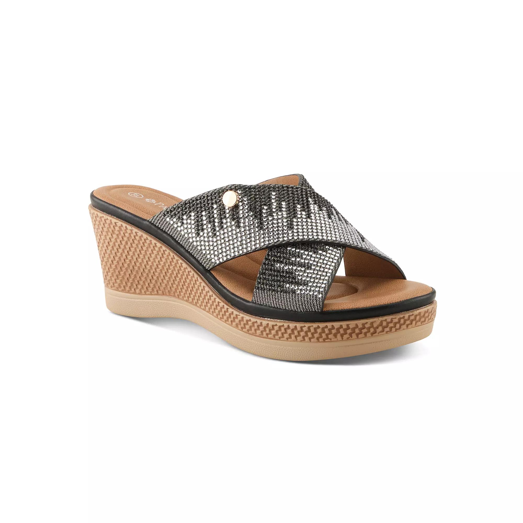 Step into comfort and style with the Patrizia Women's Vashion Slide Sandals, designed for effortless wear and a chic look. These versatile slide sandals blend sporty flair with everyday elegance, making them the perfect choice for any casual outing.Click this FOOTWEAR GUIDE to find the perfect fit and more!.Step into comfort and style with the Patrizia Women's Vashion Slide Sandals, designed for effortless wear and a chic look. These versatile slide sandals blend sporty flair with everyday elegance, making them the perfect choice for any casual outing.Click this FOOTWEAR GUIDE to find the perfect fit and more!.FEATURES Crystal-adorned crisscross straps for a glamorous, eye-catching look Dress them up with a flowing maxi dress or down with your favorite denim shorts - the VASHION seamlessly transitions from day to night, for all of your warmer seasons Elevated wedge platform for added height and support Cushioned footbed for all-day comfortDETAILS Faux leather upper Faux leather lining Polyurethane outsole Open toe Slip-on 3-in. heel height Spot clean Imported This product can expose you to chemical(s) which is (are) known to the State of California to cause cancer and birth defects or other reproductive harm. For more information go to www.P65Warnings.ca.gov. Size: 39. Color: Black Team. Gender: female. Age Group: adult. Material: Synthetic.