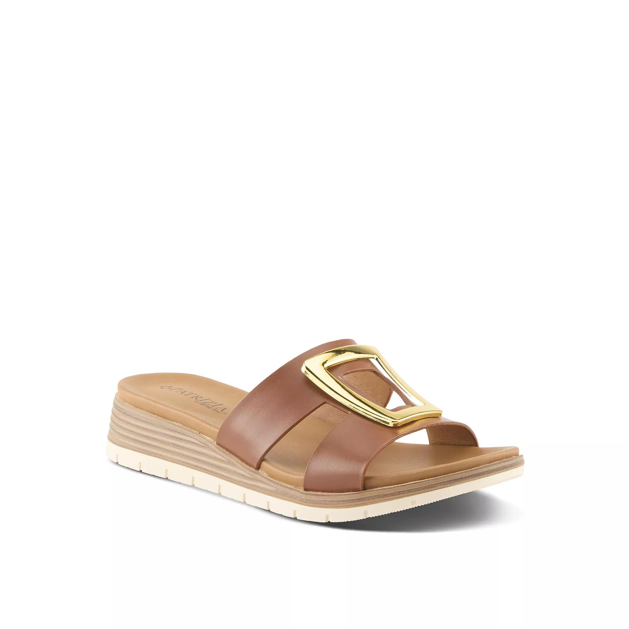 Enjoy everyday elegance with the Patrizia Women's Malmo Slide Sandals, crafted with soft, durable materials for long-lasting comfort. Their sleek slide-on design and cushioned footbed make them a stylish and comfortable choice for any warm-weather occasion.Click this FOOTWEAR GUIDE to find the perfect fit and more!Enjoy everyday elegance with the Patrizia Women's Malmo Slide Sandals, crafted with soft, durable materials for long-lasting comfort. Their sleek slide-on design and cushioned footbed make them a stylish and comfortable choice for any warm-weather occasion. Click this FOOTWEAR GUIDE to find the perfect fit and more!FEATURES H-shaped band slide sandal features a golden ornament for a designer-inspired look Faux stacked wedge construction offers slight elevation and a stylish finish Cushioned insole ensures comfortable wear with every step Sleek faux leather upper adds refinement to casual and dressy outfitsDETAILS Faux leather upper Faux leather lining TPR (Thermoplastic Rubber) outsole Open toe Slip-on Heel height: 1.5 in. Spot clean Imported This product can expose you to chemical(s) which is (are) known to the State of California to cause cancer and birth defects or other reproductive harm. For more information go to www.P65Warnings.ca.gov. Size: 38. Color: Brown. Gender: female. Age Group: adult. Material: Synthetic.