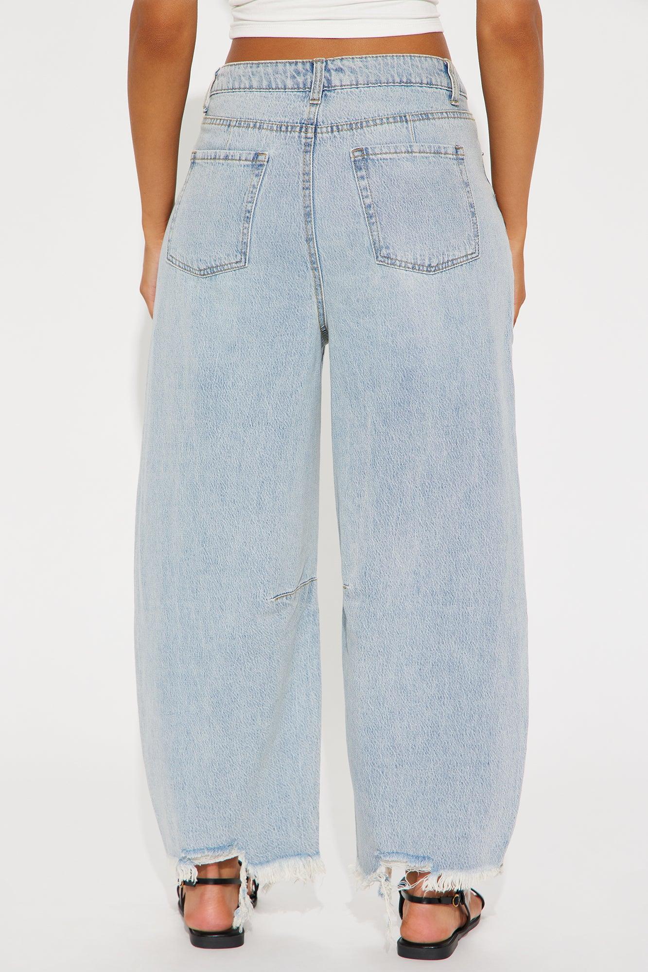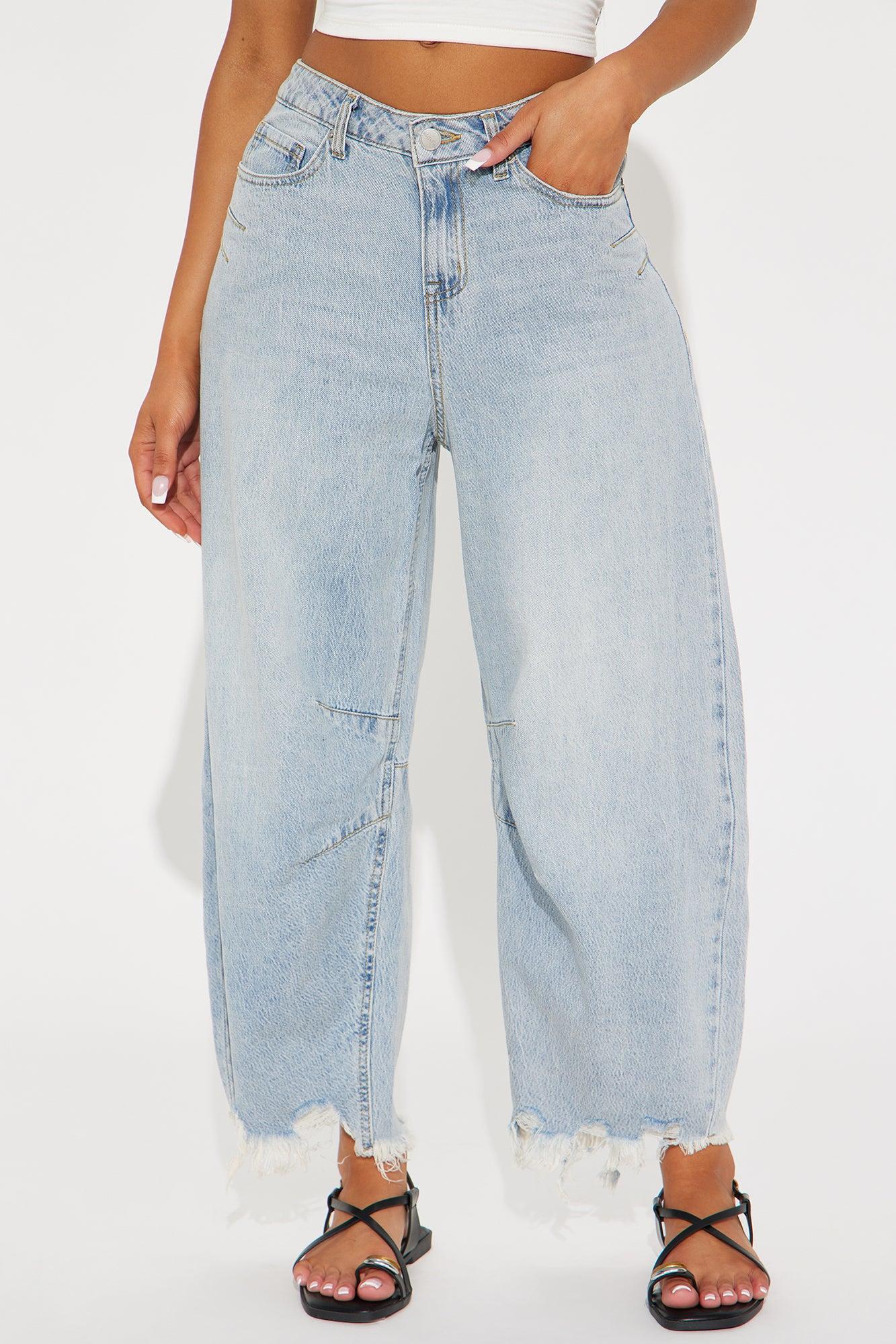 Available In Medium Wash And Vintage Wash. Barrel Jean 5 Pocket Cropped Dart Detail Fray Hem Detail 10.5" High Rise 25" Inseam Non Stretch Disclaimer: Due To The Specialized Wash Process, Each Garment Is Unique. 68% Cotton 32% Lyocell Imported