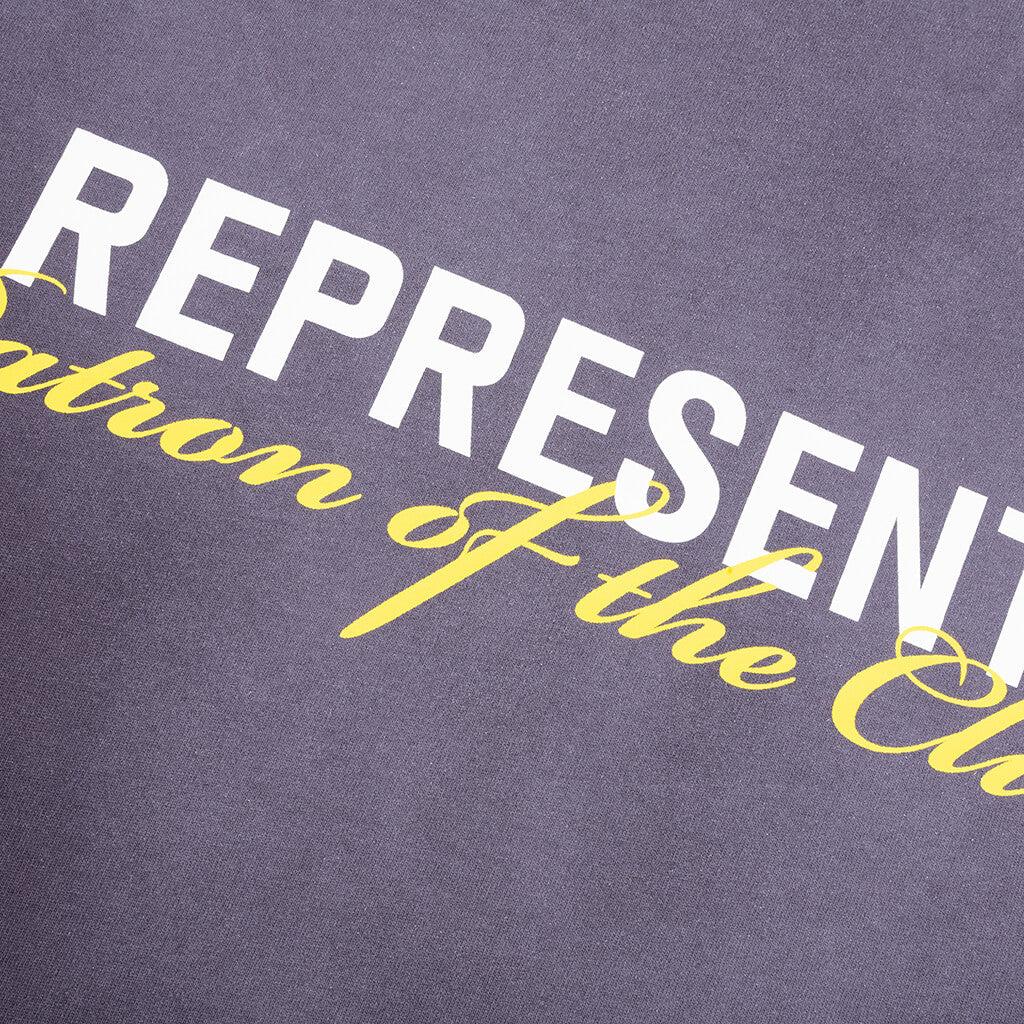 The Patron of the Club T-Shirt is the latest addition to Represent's t-shirt collection. Cut from premium cotton with an oversized fit, this tee features a ribbed crew neckline. Screen-printed graphics are showcased across the front and back. Finished with the signature Represent metal bar logo at the hem. 100% Cotton Oversized fit Crew neckline Ribbed collar Screen-printed graphics Metal Represent bar logo Style No: MLM4274-43