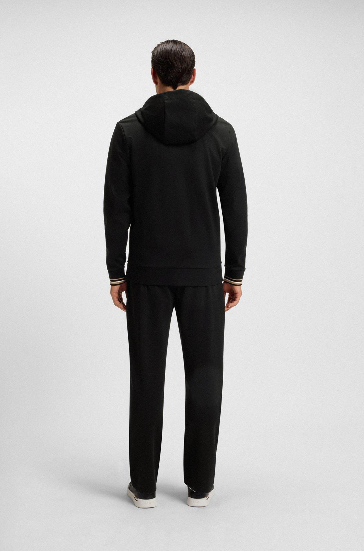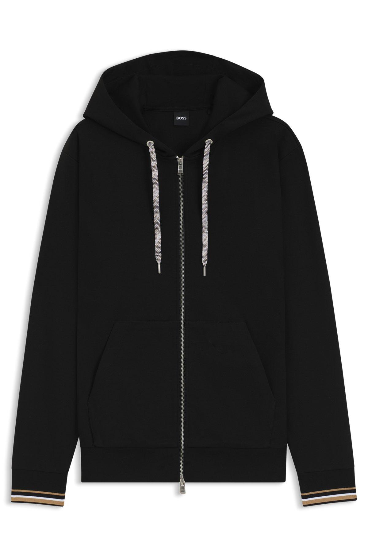 Patterned-drawcord zip-up hoodie in a cotton blend