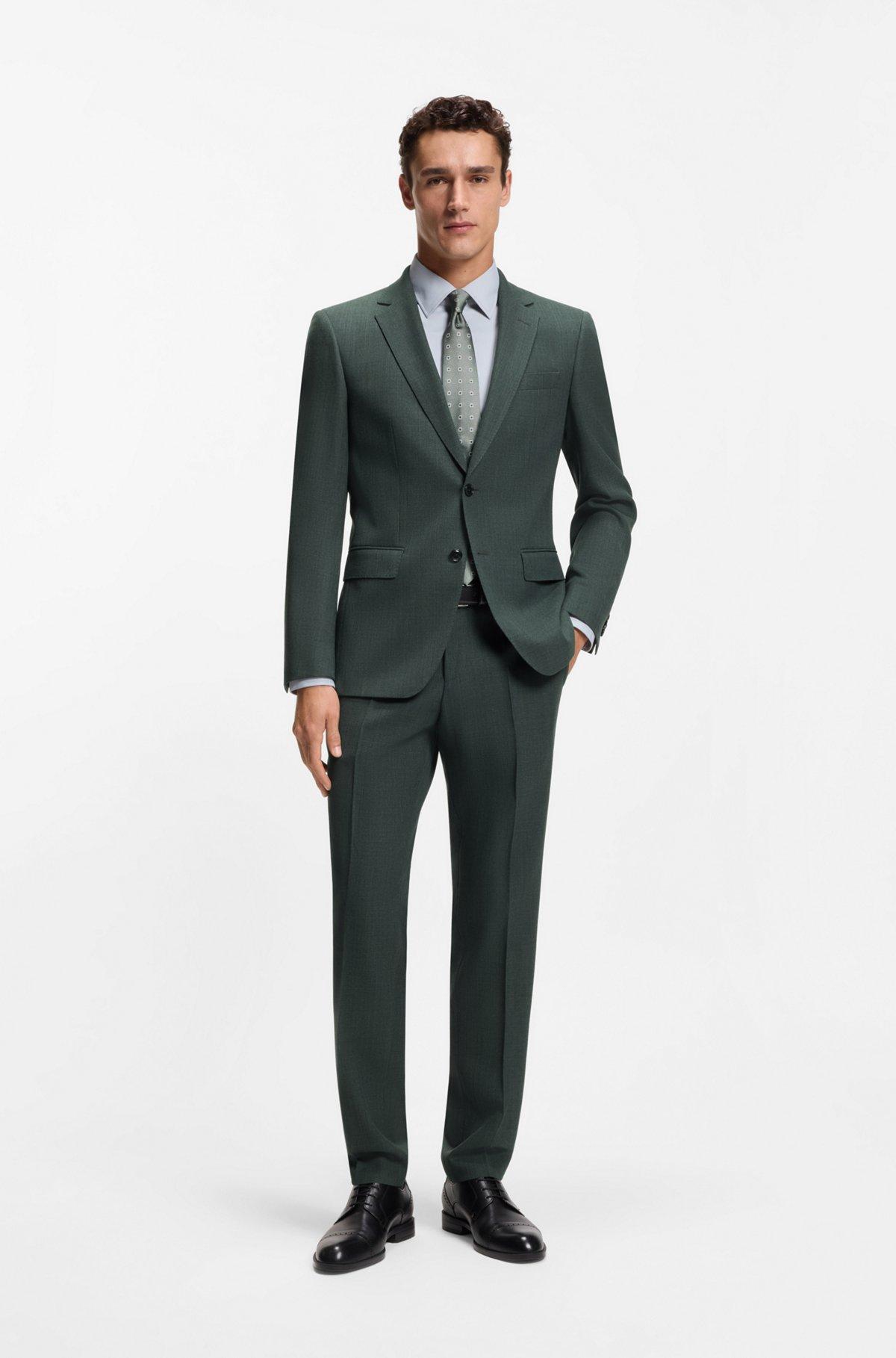 With its subtle micro pattern and clean fit, this BOSS Menswear blazer is a flexible formal choice. Crafted in virgin wool with stretch for comfort.