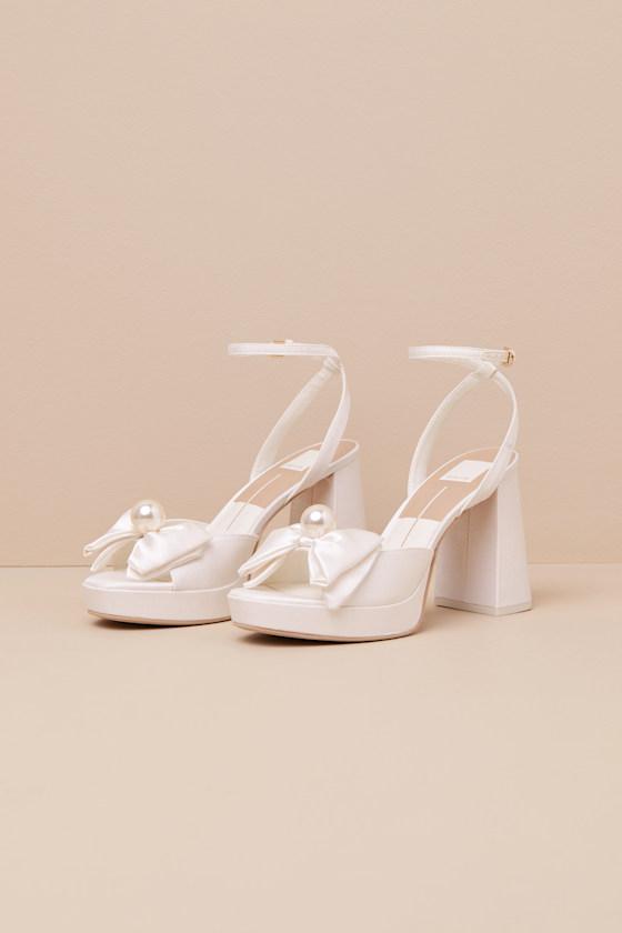 Walking down the aisle just got a so much more iconic, thanks to these Dolce Vita heels with an almond-shaped footbed atop a sleek toe platform. A chic bow detail and a bold faux pearl sit at the center of the tapered vamp strap, while a slender ankle strap secures with a little adjustable buckle. A sturdy and perfectly chunky heel completes the look!