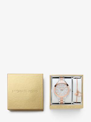 Pavé Two-Tone Watch and Heart Bracelet Set