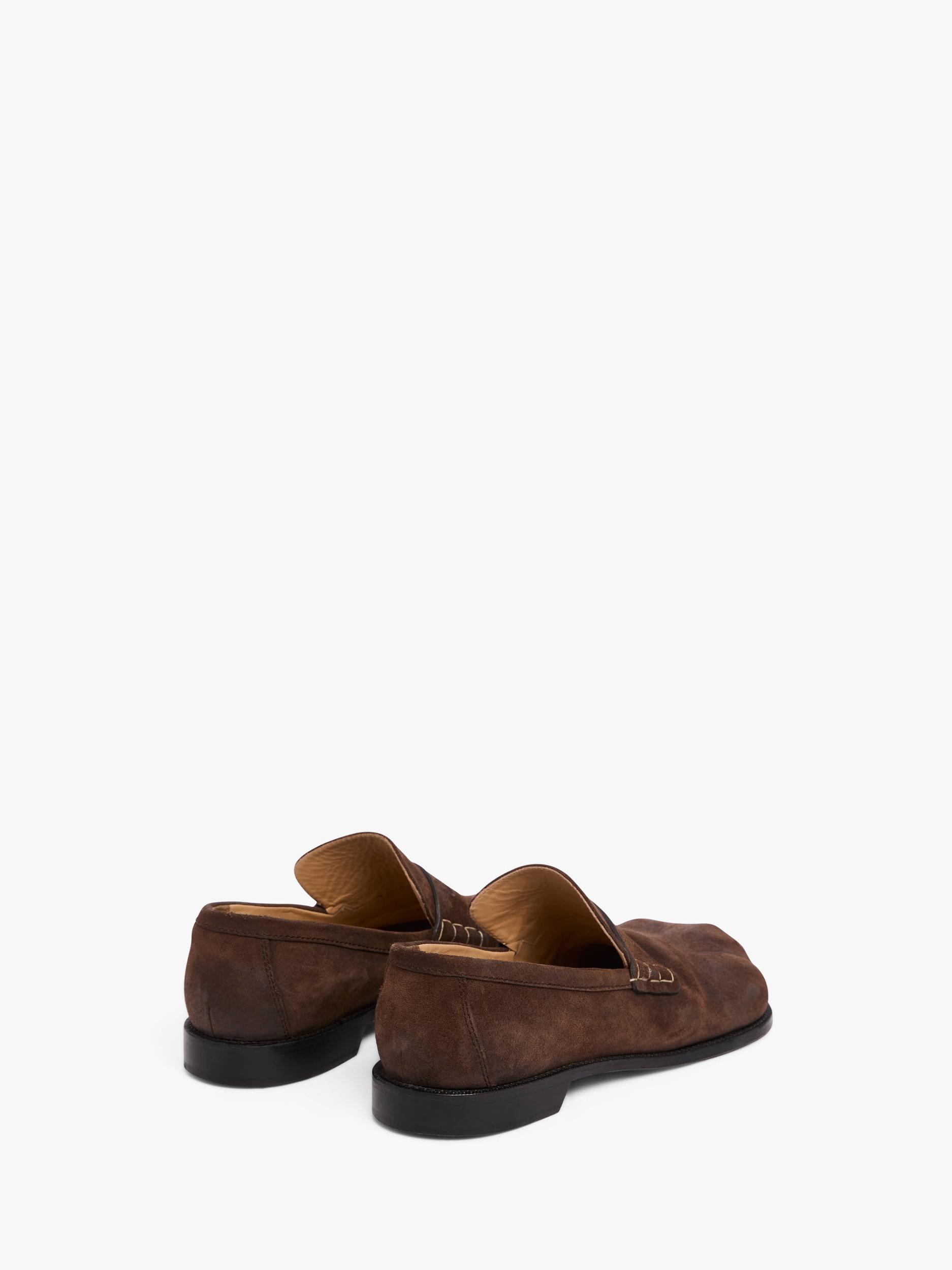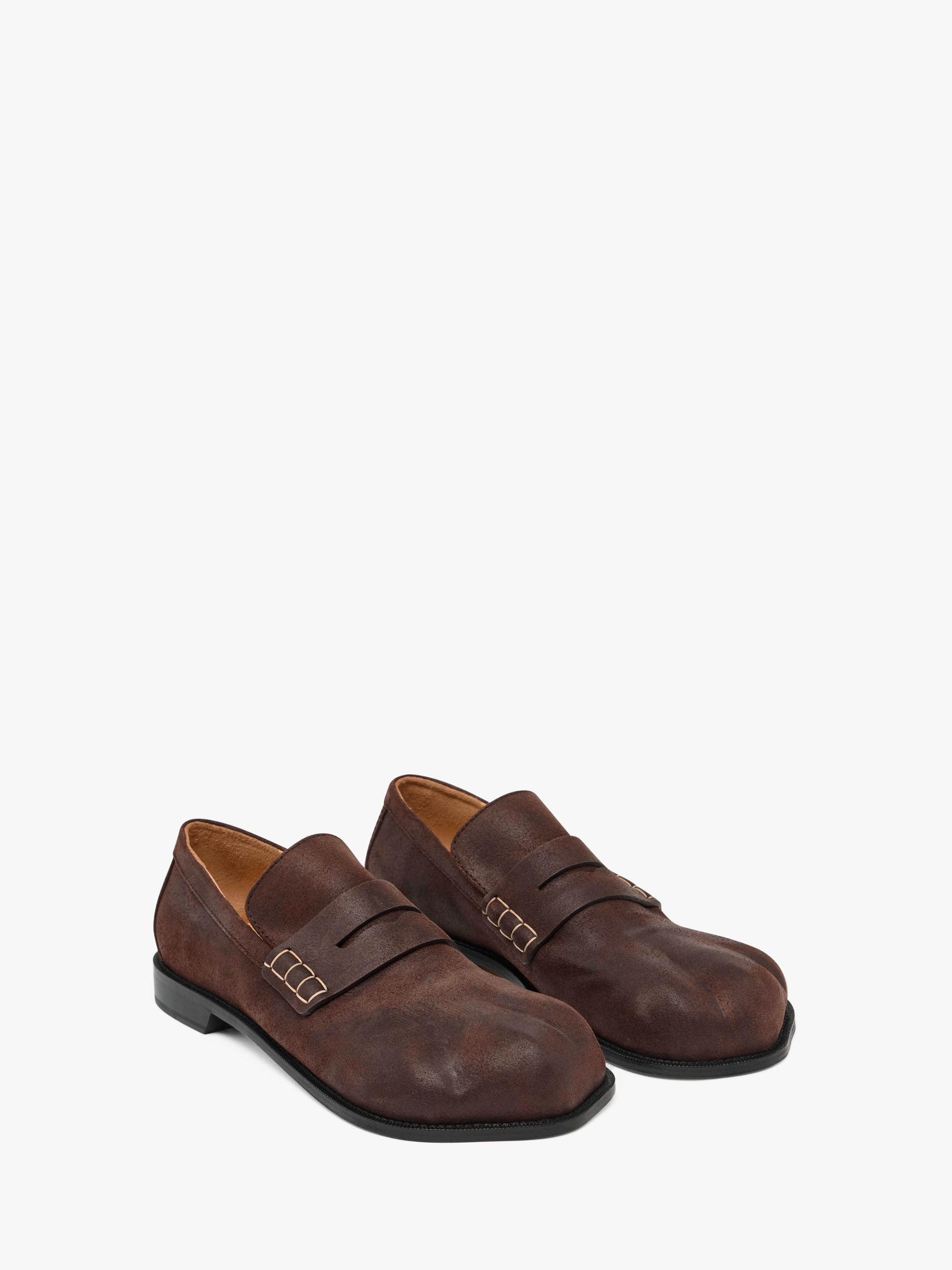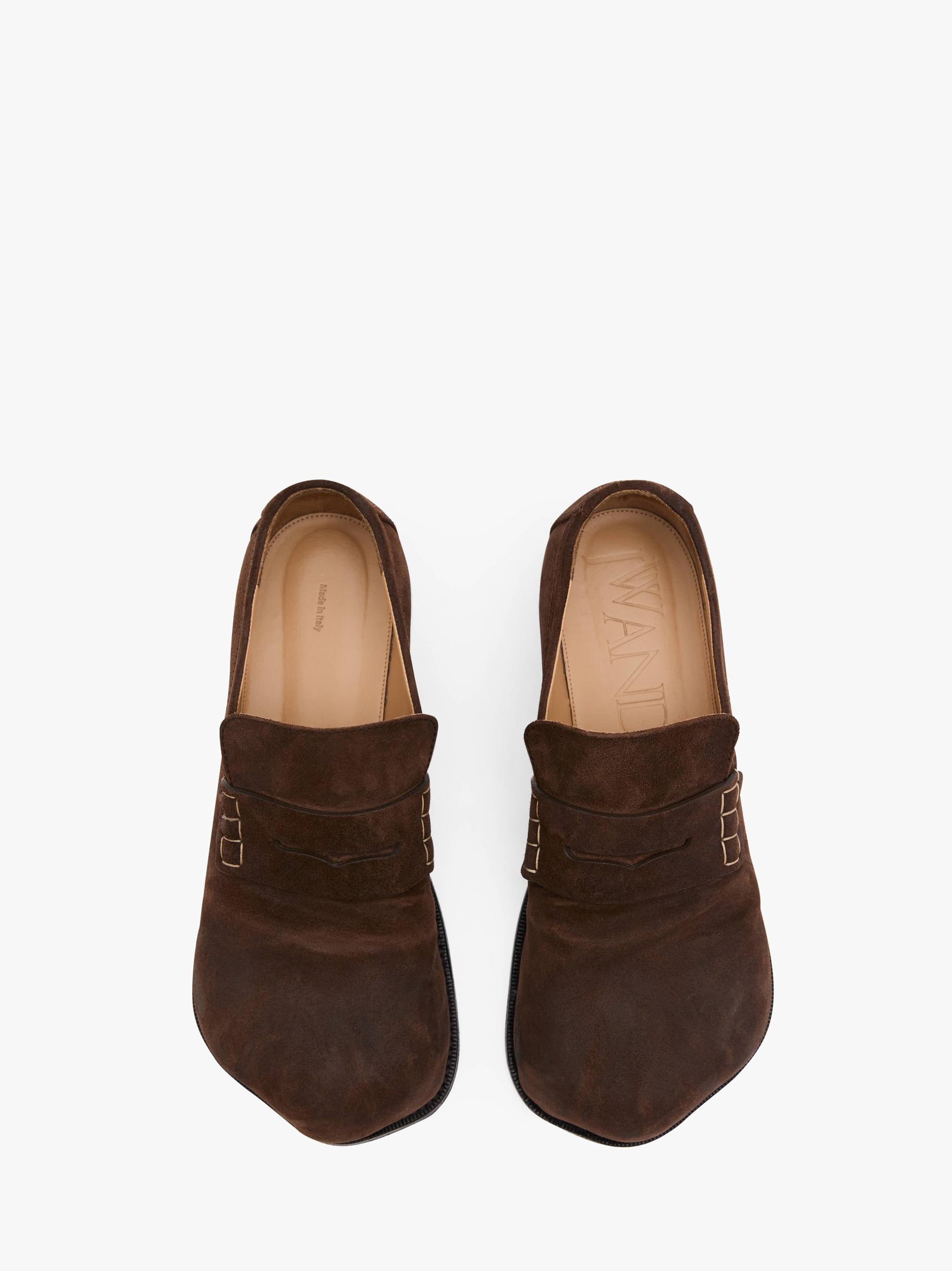 Suede loafer moccasin with paw design Signature JWA loafer stitch in contrasting white tone Wide fit style, if in-between sizes, take one size smaller than normal