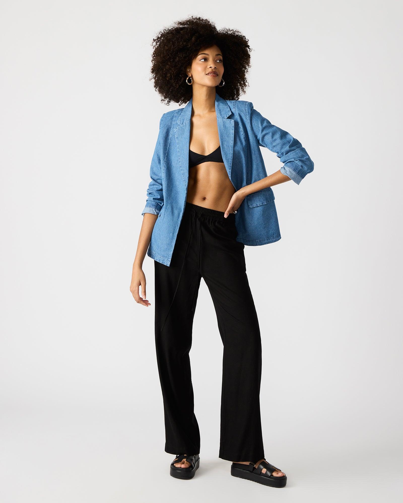 Throw on the PAYTON blazer over your OOTD for a touch of tailored style. The no-button cuffs and open front give this jacket clean, unbroken lines. Open front blazer No closure Front flap pockets Notched lapel Lined Length: 27" 100% cotton Hand wash Aimee is 5ft 9in and is wearing a size large Alex is 5ft 11in and is wearing a size small Fit tip: Fit is slightly oversized, size down for a more tailored look Imported