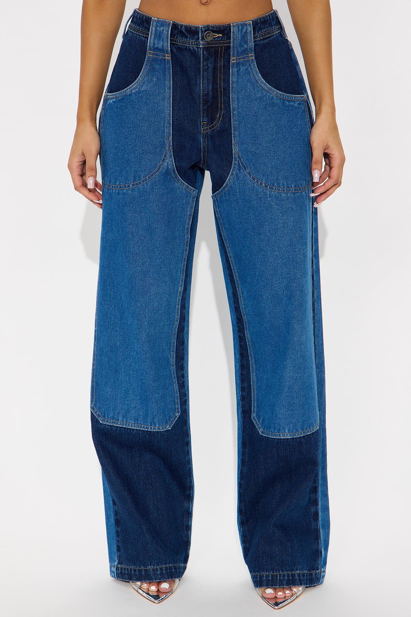 Payton Two Tone Utility Wide Leg Jeans - Dark Wash Female