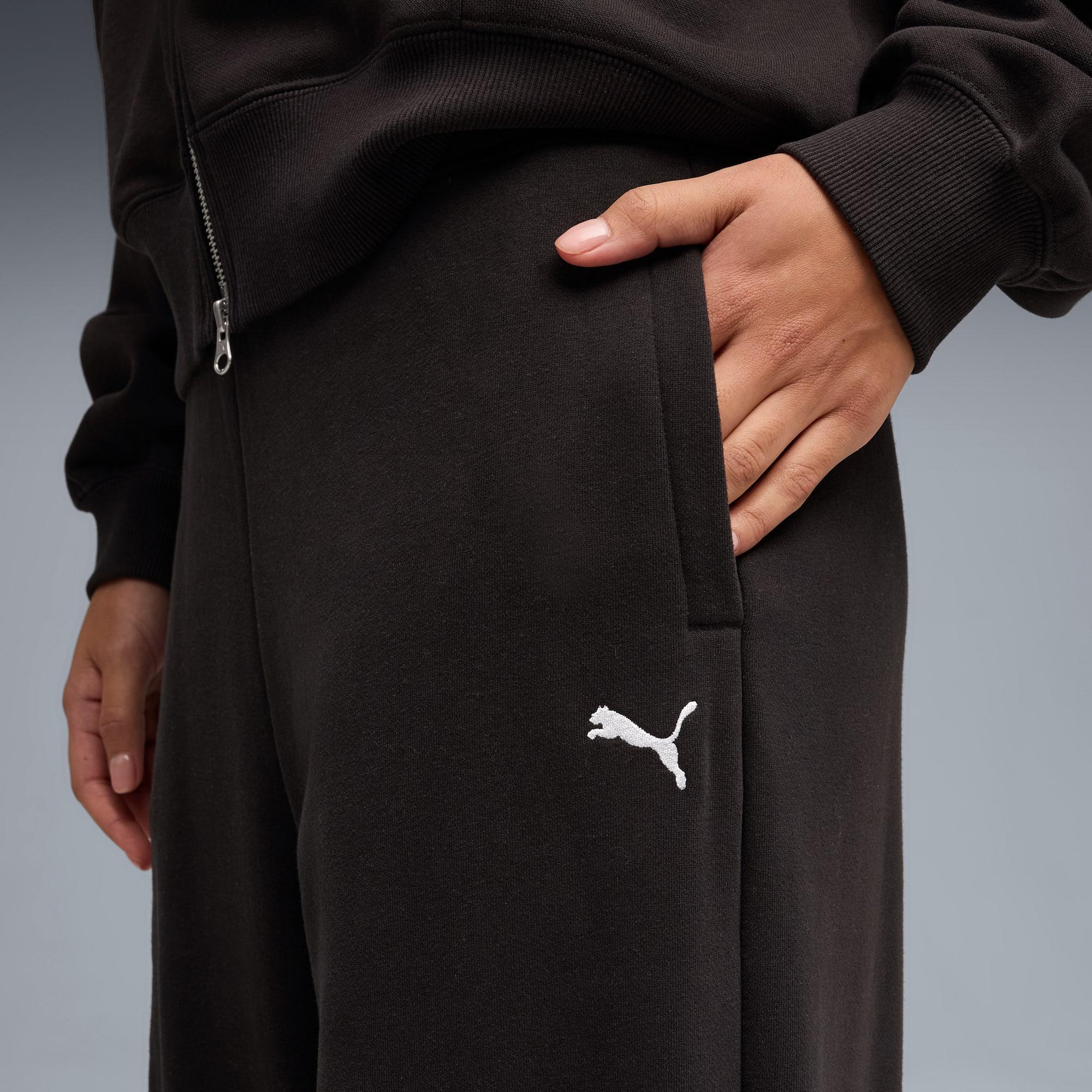 descriptionMeet your new weekend uniform. These slouchy sweatpants have a simple design that makes them easy to mix and match. They’re cut for a stylish silhouette, with an oversized fit and open bottoms. The peach touch fabric is extra soft, so you feel cosy whether you’re staying in or heading out.Style: 634583_01Color: PUMA Blackmeasure & sizeModel informationModel is 5' 9" tall and is wearing size S.features & benefitsMade with at least 20% recycled cotton.detailsFit: OversizedMain material type: French TerryLength: RegularRise: MediumEmbroidered PUMA Cat logomaterials & careMaterial informationShell: 100% cottonPocket Bag: 100% cottonCare instructionsUse detergent for coloursExclusive of DecorationWash and iron inside outWash with similar colours