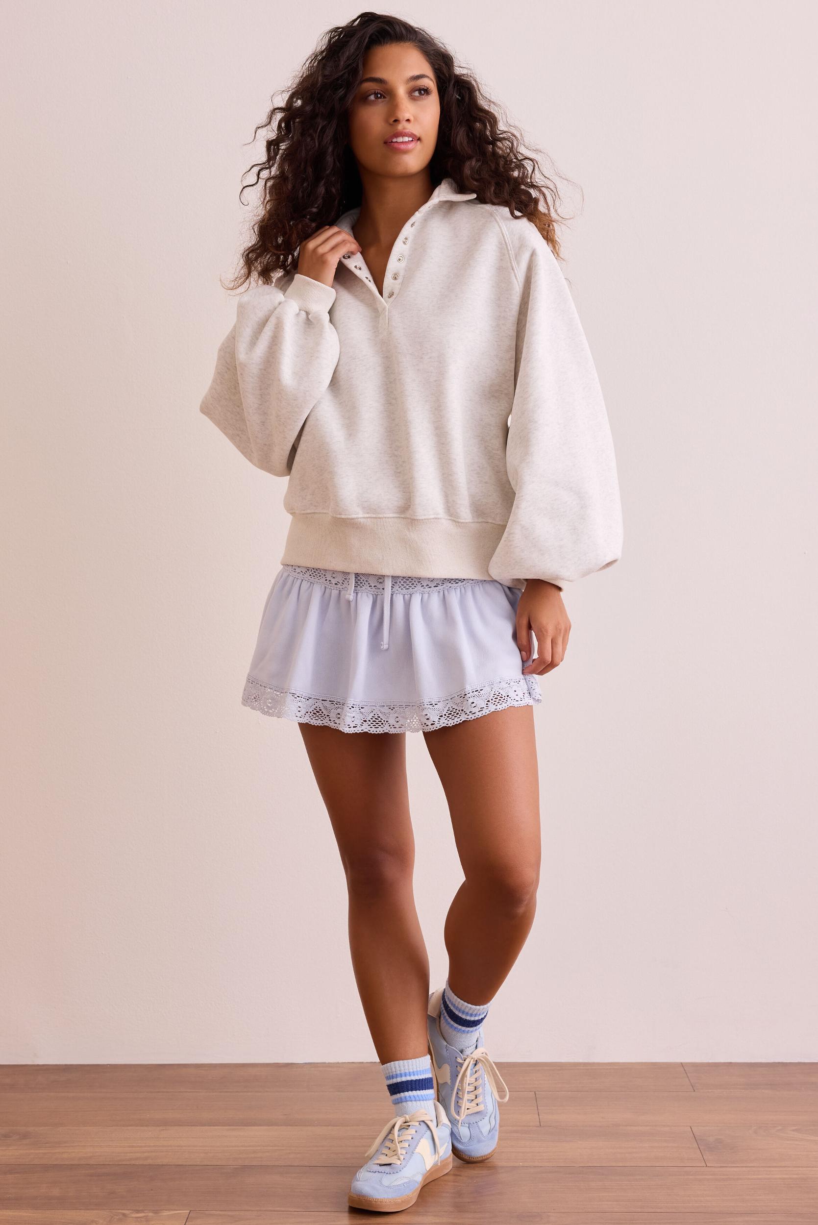 Meet your new favorite sweatshirt, with all the versatility for endless wears. You will love everything about this pullover from the oversized, balloon sleeves gathered into a soft cuff to the classy collar. The ultra soft, plushy interior offers maximum comfort with the relaxed fit for an effortless layering piece style.