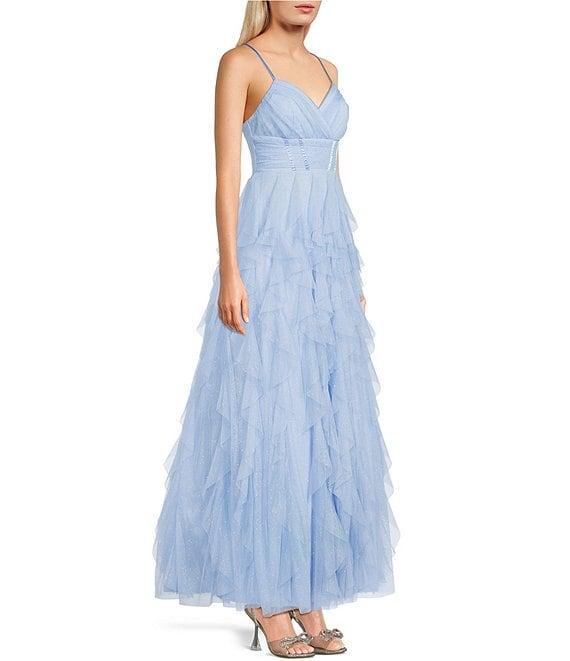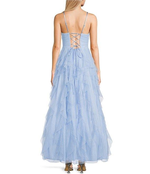Pear Culture Glitter Mesh V-Neck Corset Corkscrew Dress