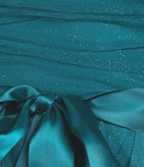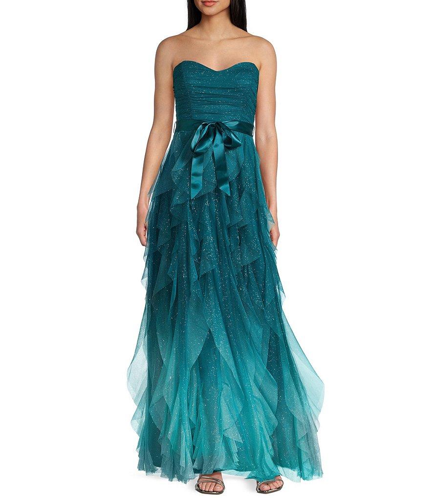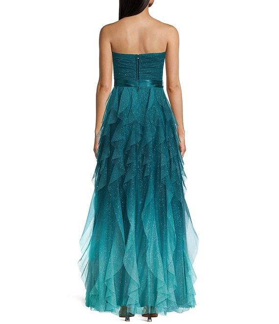 Pear Culture Strapless Glitter Ombre Mesh Ruffled Corkscrew Dress
