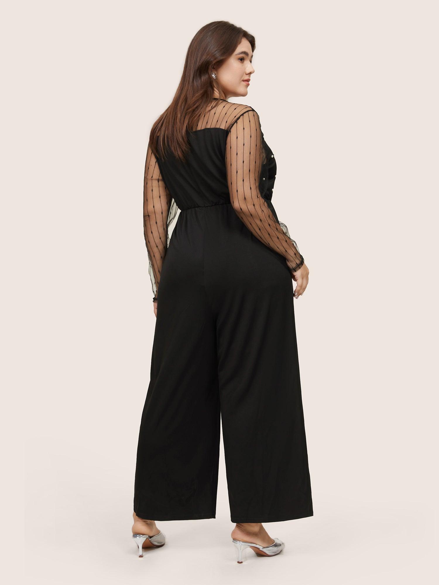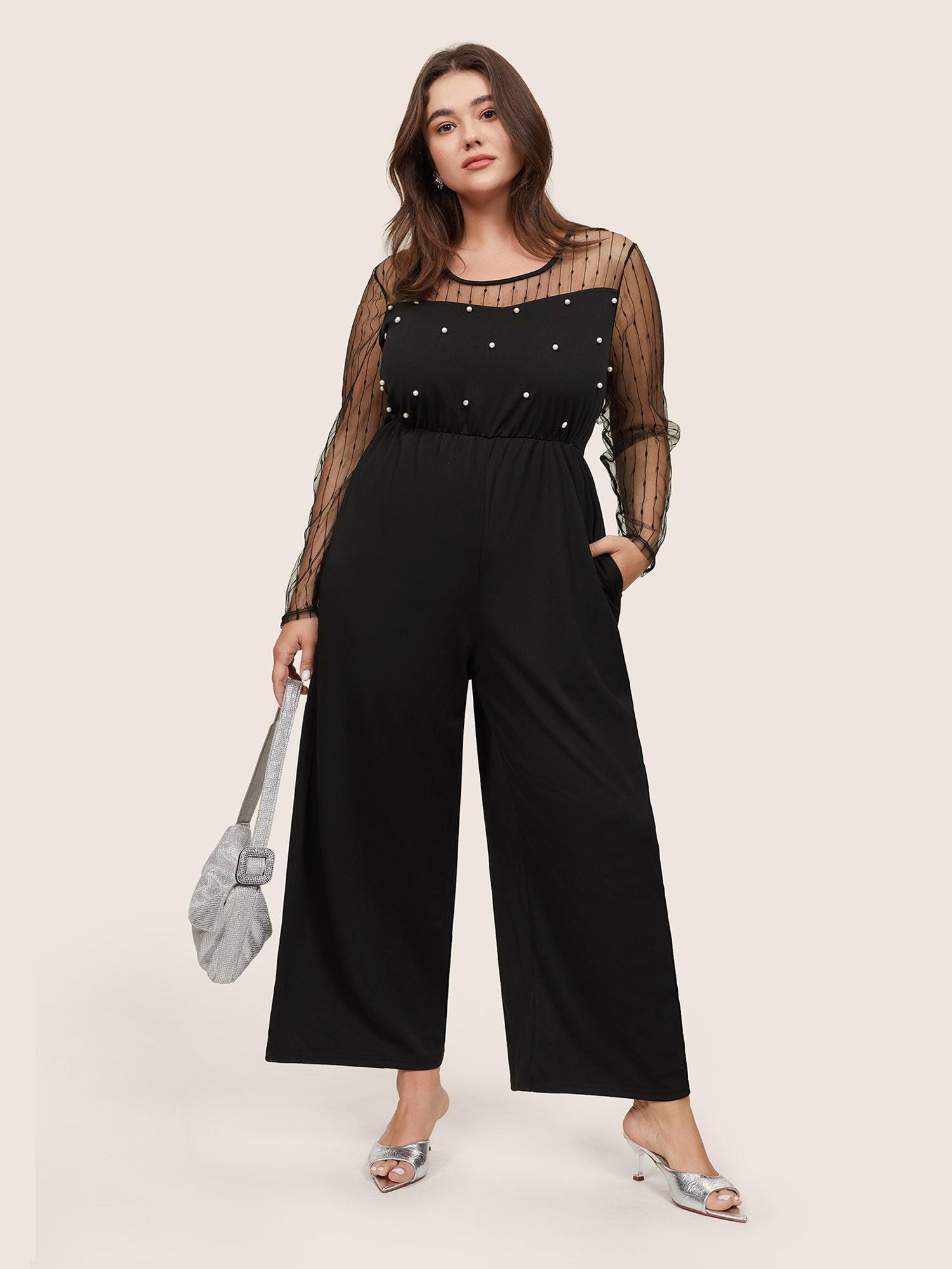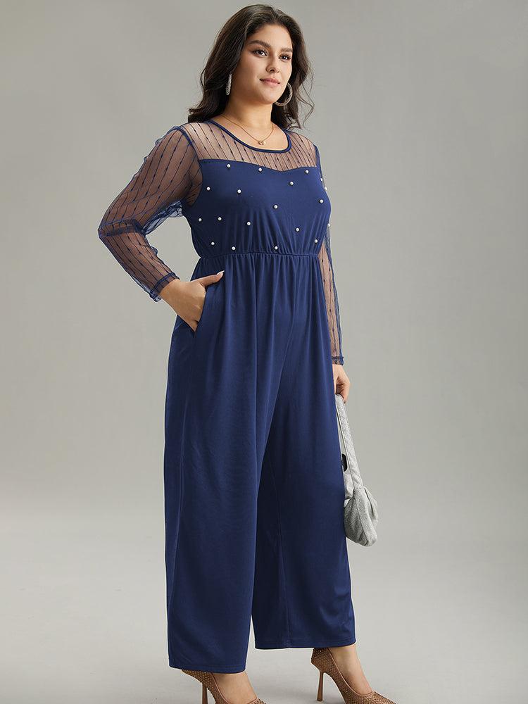 Shop Pearl Beaded Mesh Patchwork Zipper Jumpsuit now and redefine your style with confidence at BloomChic. Tailored for mid and plus-size women. This trendy Jumpsuits Women, sizes 10-30. Color:Black,Indigo;Style:Party;Neckline:Round Neck;Pattern Type:Plain;Details:Pocket, Elastic Waist, Patchwork, Lace, Plain, See through, Zipper;Pocket:It is perfectly sized to carry a phone.;Belt:No-belt