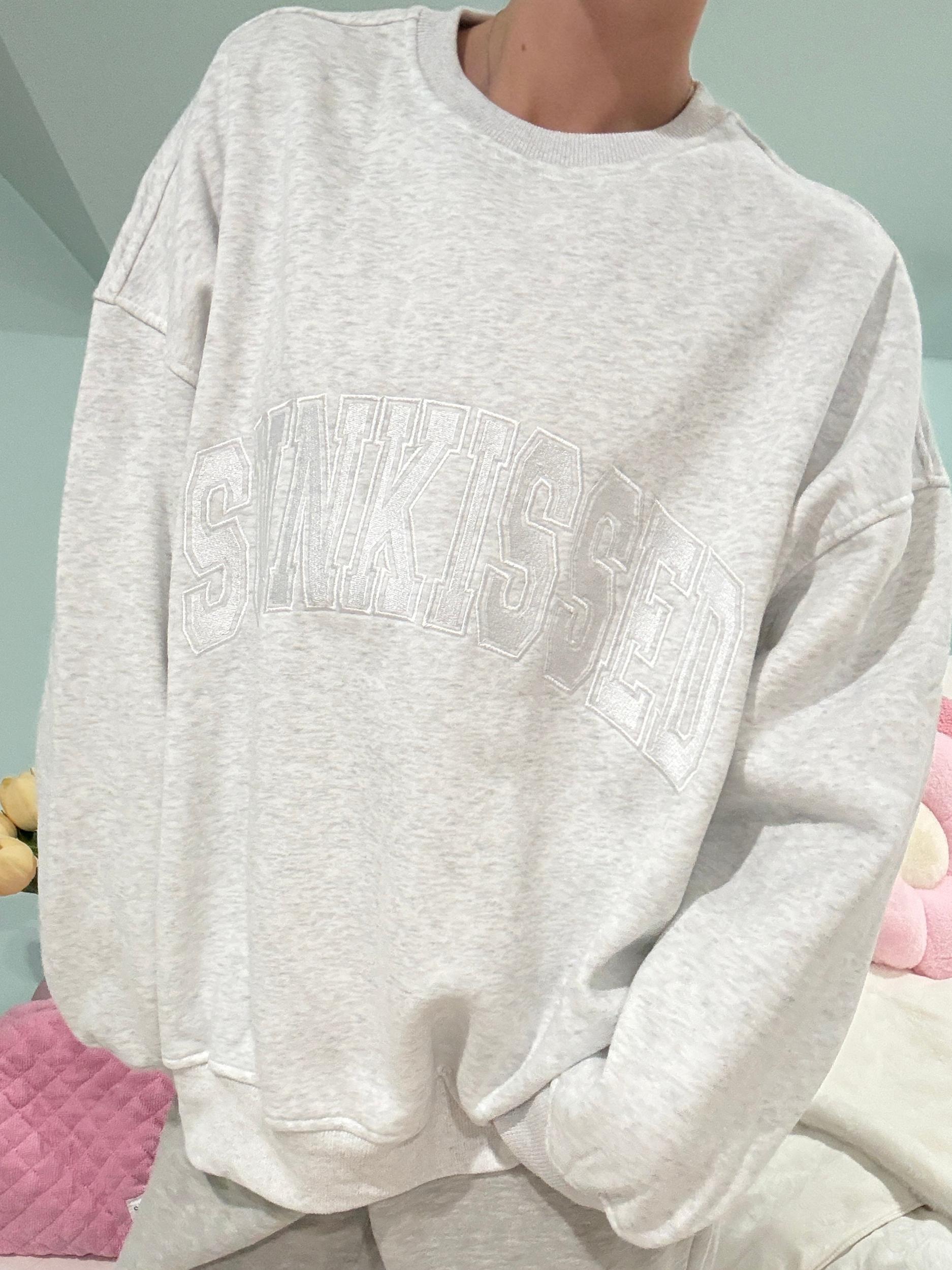 Pearl Grey and White Thread Sunkissed Varsity Embroider Sweatshirt