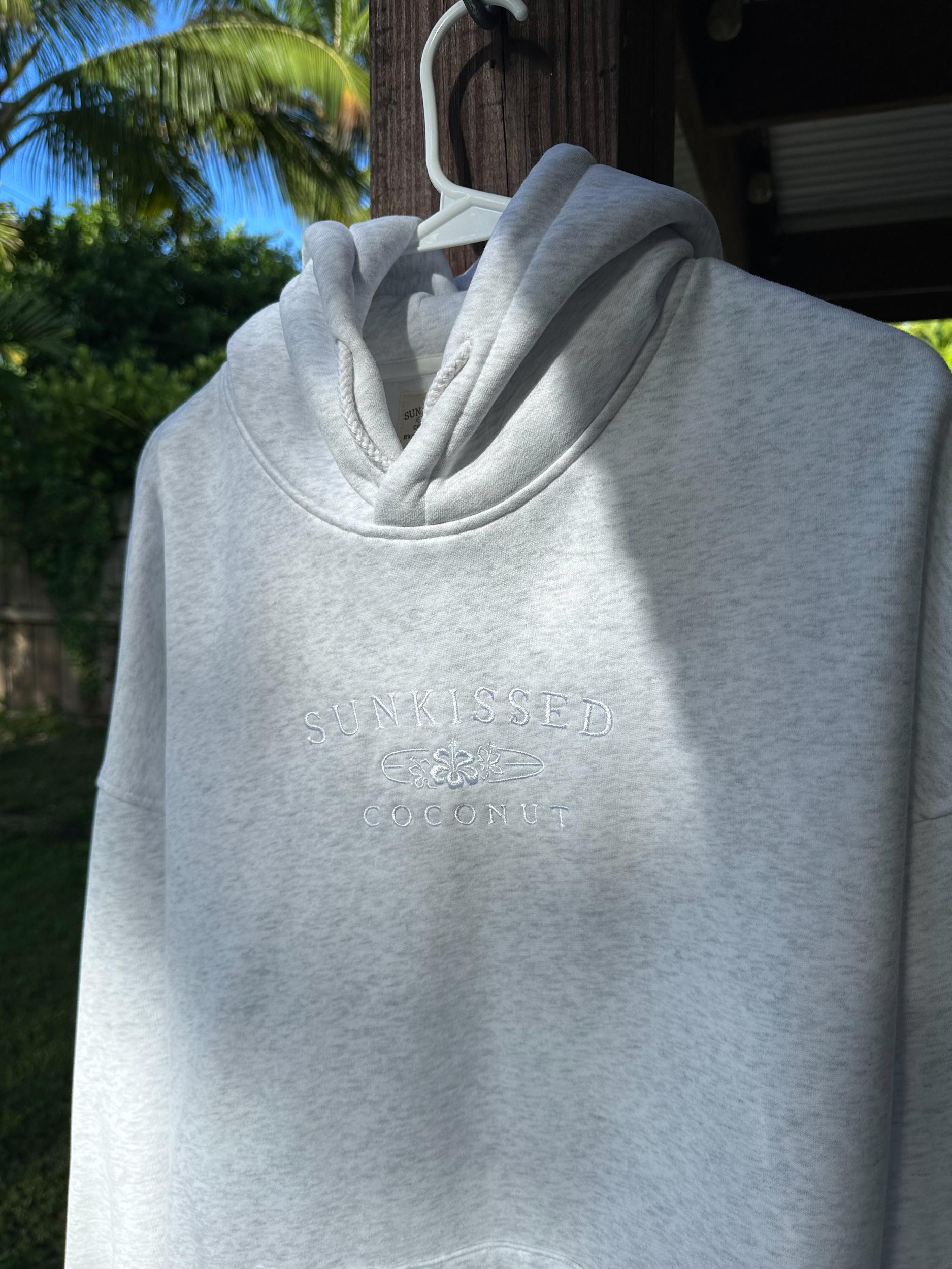 Pearl Grey and White Thread Sunkissedcoconut Embroider Hoodie