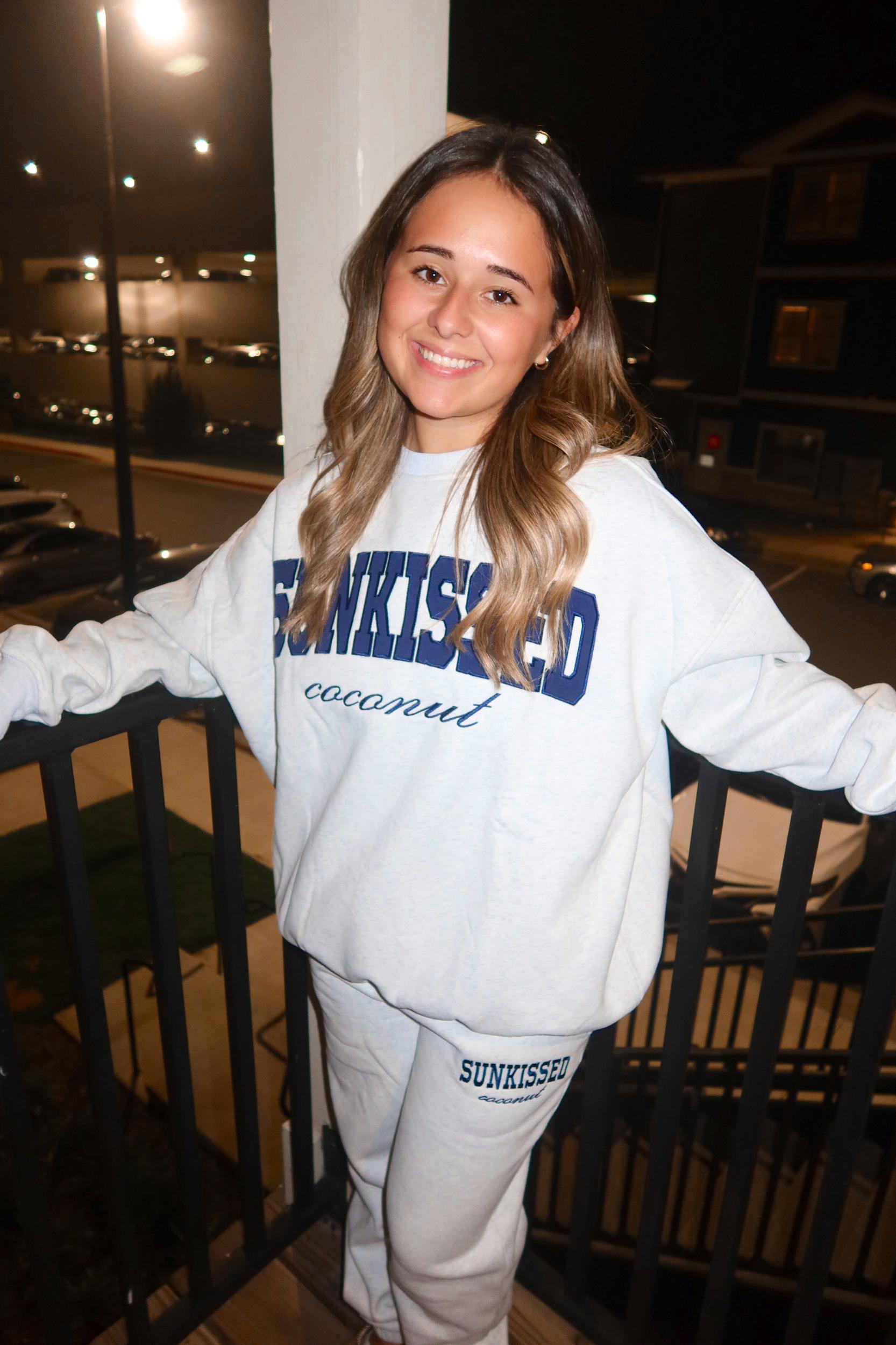 HAS MATCHING JOGGER SWEATPANTS SEARCH "Newport" - PURCHASE SEPARATELY Depending on the device you are viewing this product with the color may very - the words are "navy blue" and not black. ☀ SIZING DETAILS: All Sunkissedcoconut designs are unisex adult sizes For younger teens and children who are on the smaller side, please order a size small or medium. Do not size up if you are a smaller person it will be too big Do size up if you want a looser fit or if you have a larger chest/breast Our items are designed to be looser around the belly (but they are not oversized) View size chart below for more details MODEL: Our model is an adult in her late 20s not a teenager! She is wearing a size adult XL for an oversized fit. She is 5"3 140 lbs. ☀ Quality: At Sunkissedcoconut our brand believes in using the best materials to create our designs. We use luxury paint, ink, & thread to make our prints. Our designs are meant to last. ☀ Details: