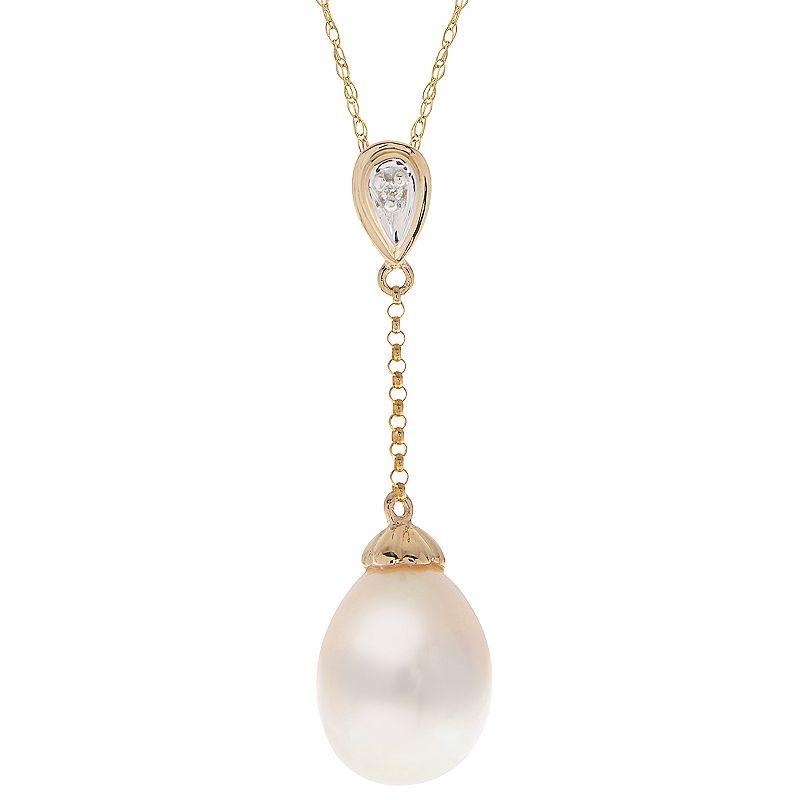 Add an elegant touch to your attire with this lustrous freshwater cultured pearl pendant. Add an elegant touch to your attire with this lustrous freshwater cultured pearl pendant. Pendant size: 1 1/8L x 1/3W Length: 18 in. Clasp: spring-ring Chain type: rope Metal: 10k gold Finish: polished Packaging: boxedCULTURED PEARL DETAILS Type: freshwater Size: 8.5 mm - 9 mm Shape: oval Color: whiteDIAMOND DETAILS Shape: round Setting: prong Total weight: less than 1/10 ct. Color grade: H-I Clarity: I2-I3 Gemstones may have been treated to enhance their appearance. Special care may be required. Please visit our Gemstone Treatment & Special Care Guide for more information. Please note, due to the high value of this item, a signature may be required upon delivery. Size: 18. Gender: female. Age Group: adult.