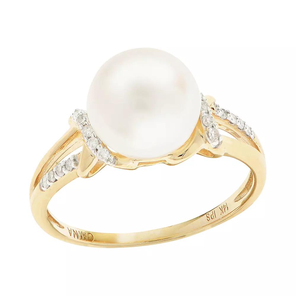 Featuring a freshwater cultured pearl and diamond accents, this stunning accessory is a wardrobe must-have. Featuring a freshwater cultured pearl and diamond accents, this stunning accessory is a wardrobe must-have. Width: 9 mm Metal: 14k gold Finish: polished Packaging: boxed Plating: rhodiumCULTURED PEARL DETAILS Type: freshwater Size: 8.5 mm - 9 mm Shape: round Color: whiteDIAMOND DETAILS Shape: round Setting: pave Total weight: less than 1/10 ct. Clarity: I2 Color grade: H-I Gemstones may have been treated to enhance their appearance. Special care may be required. Please visit our Gemstone Treatment & Special Care Guide for more information. Diamond weights are approximate. Diamond total weights may vary between .01 and .08 ct. Some diamonds have fewer than 17 facets. Image(s) may be enlarged to show detail. Please note, due to the high value of this item, a signature may be required upon delivery. Size: 6. Gender: female. Age Group: adult.