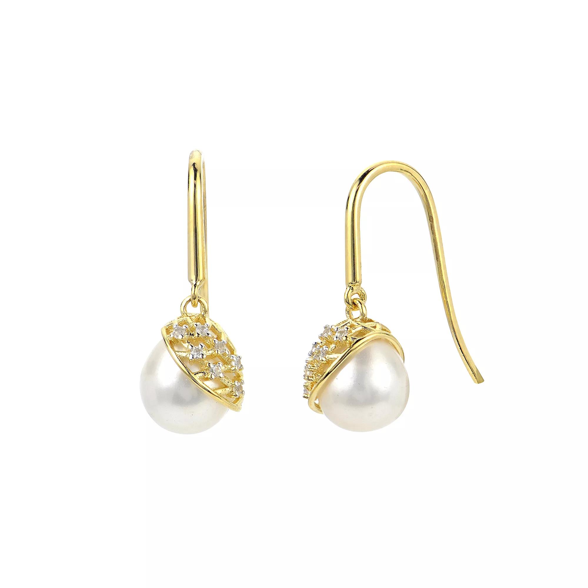 Unique and elegant, these PearLustre by Imperial freshwater cultured pearl and lab-created white sapphire lattice earrings are a wonderful addition to your jewelry collection. Unique and elegant, these PearLustre by Imperial freshwater cultured pearl and lab-created white sapphire lattice earrings are a wonderful addition to your jewelry collection. Length: 1.0 in. Metal: sterling silver Plating: 14k gold Finish: polished Packaging: boxed Backings: shepherd hook Nickel freeSTONE DETAILS Stone type: lab-created white sapphire Total weight: less than 1/10 ct. Shape: round Setting: prongCULTURED PEARL DETAILS Type: freshwater Size: 7 mm - 8 mm Shape: oval Color: white Gemstones may have been treated to enhance their appearance. Special care may be required. Please visit our Gemstone Treatment & Special Care Guide for more information. Image(s) may be enlarged to show detail. Size: One Size. Color: Yellow. Gender: female. Age Group: adult.