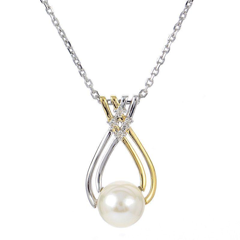 PearLustre by Imperial 14k Gold Over Silver Two Tone Freshwater Cultured Pearl & Lab-Created White Sapphire Pendant Necklace, Womens