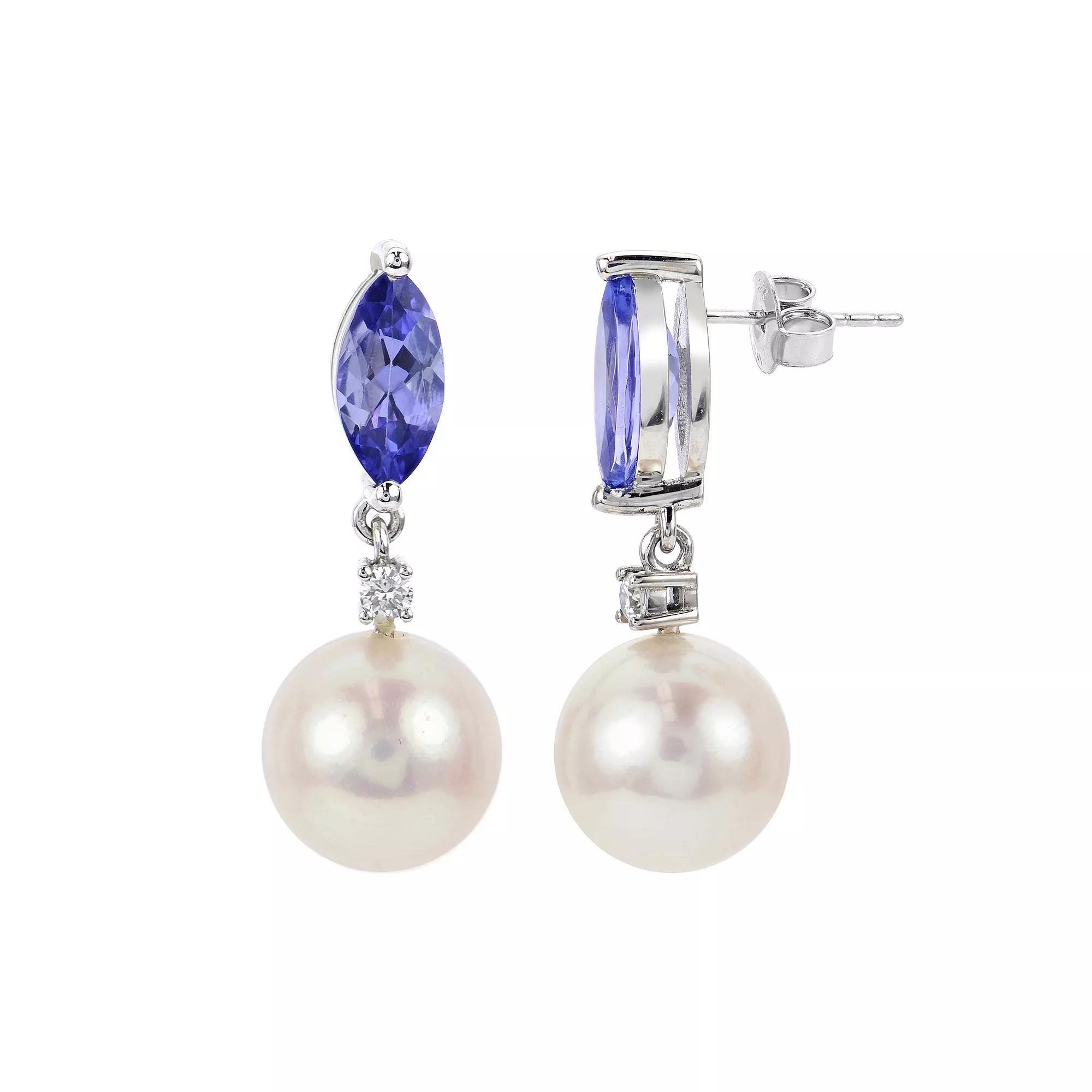 Designed with lustrous freshwater cultured pearls and dazzling gemstones, these PearLustre by Imperial earrings elevate your style. Designed with lustrous freshwater cultured pearls and dazzling gemstones, these PearLustre by Imperial earrings elevate your style. Metal: 14k white gold Backings: post Packaging: boxed Plating: rhodium Finish: polished Length: 0.9 in.STONE DETAILS Stone type: tanzanite Total weight: 1 ct. Center stone weight: 1/2 ct. Center stone size: 8 mm x 4 mm Shape: marquise Setting: prongDIAMOND DETAILS Total weight: less than 1/10 ct. Shape: round Setting: prongCULTURED PEARL DETAILS Type: freshwater Size: 9 mm - 9.5 mm Shape: round Color: white Diamond weights are approximate. Diamond Total Weights may vary between .01 and .13 ct. Some diamonds consist of fewer than 17 facets. Gemstones may have been treated to enhance their appearance. Special care may be required. Please visit our Gemstone Treatment & Special Care Guide for more information. Image(s) may be enlarged to show detail. Please note, due to the high value of this item, a signature may be required upon delivery. Gender: female. Age Group: adult.