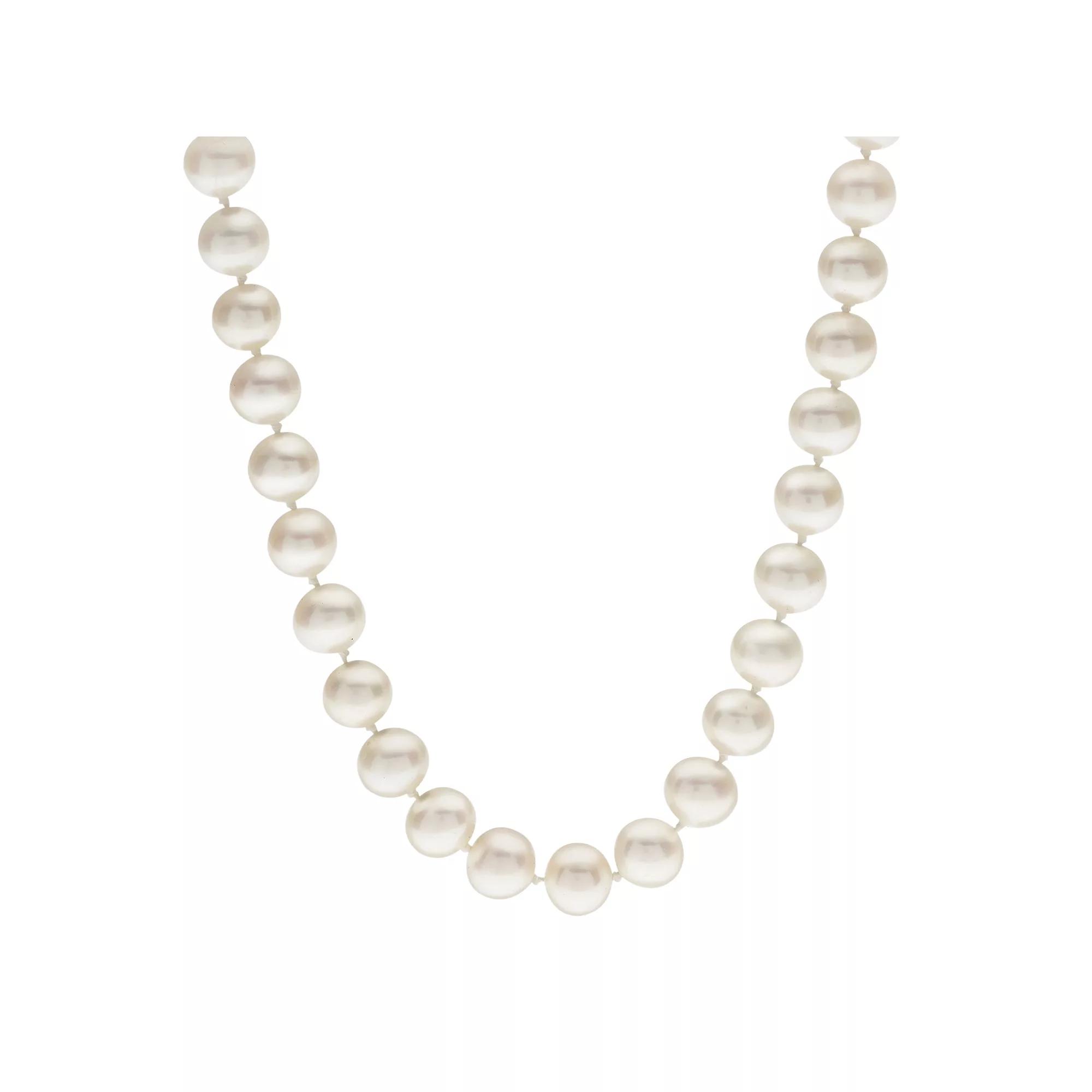 Decorated with near-round freshwater cultured pearls, this necklace gives your outfit timeless beauty. Comes in a gift box.NECKLACE DETAILSLength: 18 in.Clasp: safetyMetal: rhodium-plated sterling silverCULTURED PEARL DETAILSType: freshwaterShape: near-roundSize: 7-7.5 mmColor: whiteGemstones may have been treated to enhance their appearance. Special care may be required. Please visit our Gemstone Treatment & Special Care Guide for more information. Size: 18". Gender: female. Age Group: adult.