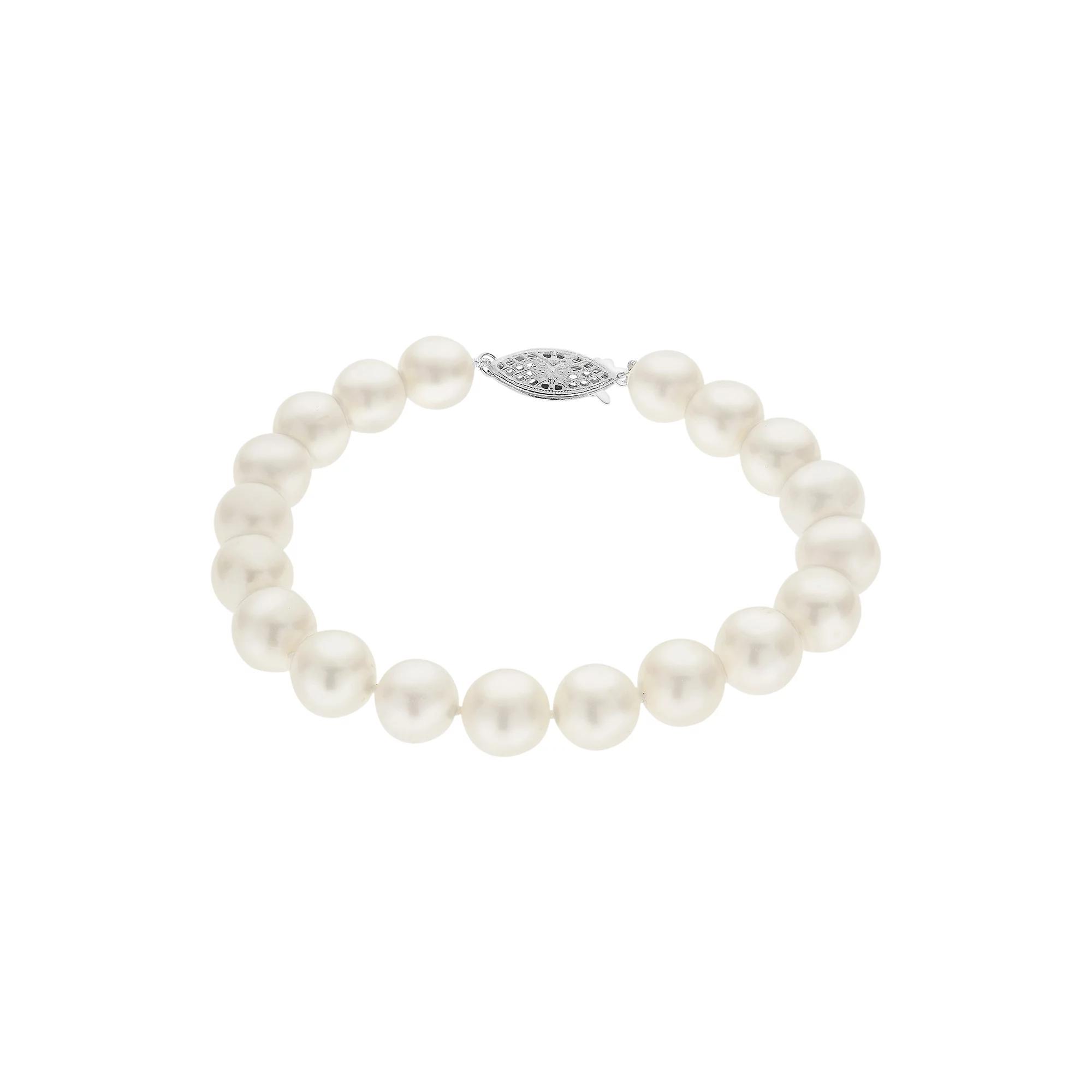 Adorned with near-round freshwater cultured pearls and a filigree clasp, this bracelet abounds with elegant appeal. Comes in a gift box.BRACELET DETAILS Length: 7.5 in. Clasp: safety Metal: rhodium-plated sterling silver CULTURED PEARL DETAILS Type: freshwater Shape: near-round Size: 8.5-9.5 mm Color: white Gemstones may have been treated to enhance their appearance. Special care may be required. Please visit our Gemstone Treatment & Special Care Guide for more information. Size: 7.5". Gender: female. Age Group: adult.