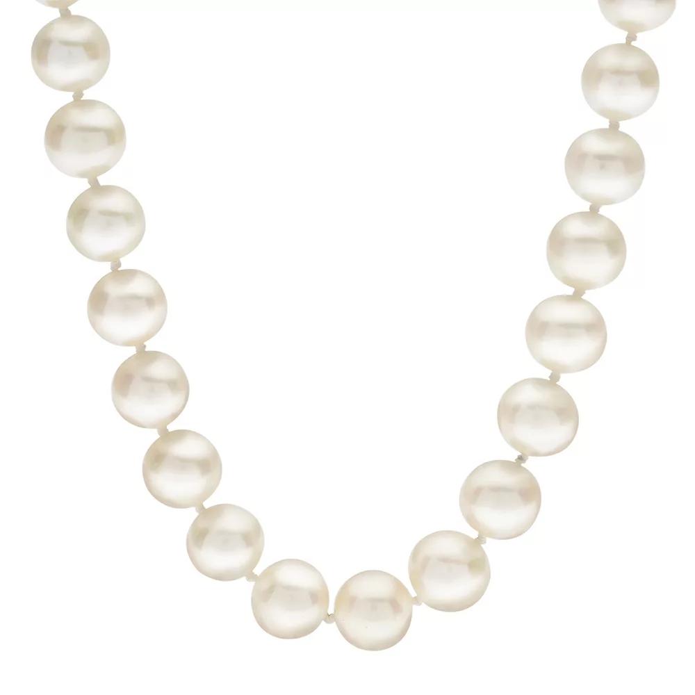 Decorated with near-round freshwater cultured pearls, this necklace gives your outfit timeless beauty. Comes in a gift box.NECKLACE DETAILSLength: 18 in.Clasp: safetyMetal: rhodium-plated sterling silverCULTURED PEARL DETAILSType: freshwaterShape: near-roundSize: 8.5-9.5 mmColor: whiteGemstones may have been treated to enhance their appearance. Special care may be required. Please visit our Gemstone Treatment & Special Care Guide for more information. Size: 18". Gender: female. Age Group: adult.