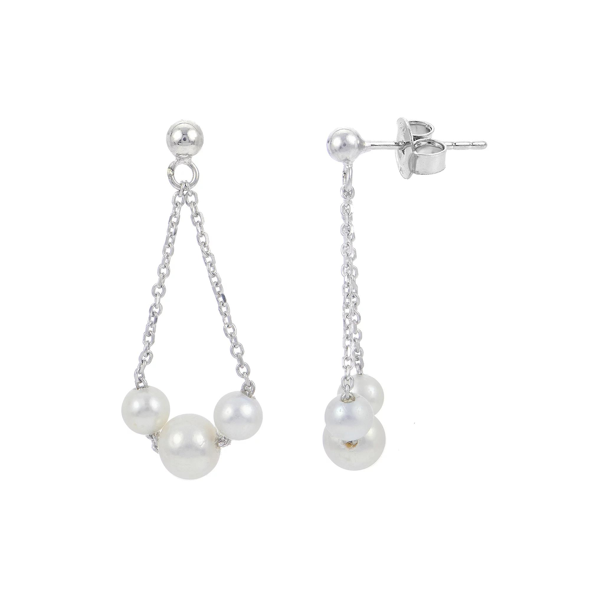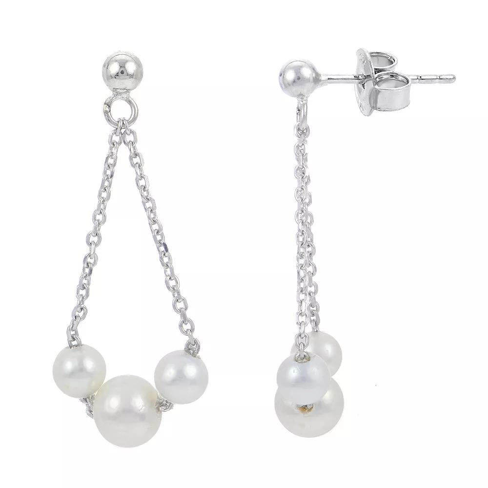 Luminous freshwater cultured pearls adorn these beautiful PearLustre by Imperial chain drop earrings. Luminous freshwater cultured pearls adorn these beautiful PearLustre by Imperial chain drop earrings. Nickel free Metal: sterling silver Backings: post Packaging: boxed Plating: rhodium Finish: polished Length: 1.2 in.CULTURED PEARL DETAILS Type: freshwater Shape: round Size: 4 mm - 5.5 mm Color: white Gemstones may have been treated to enhance their appearance. Special care may be required. Please visit our Gemstone Treatment & Special Care Guide for more information. Size: One Size. Gender: female. Age Group: adult.
