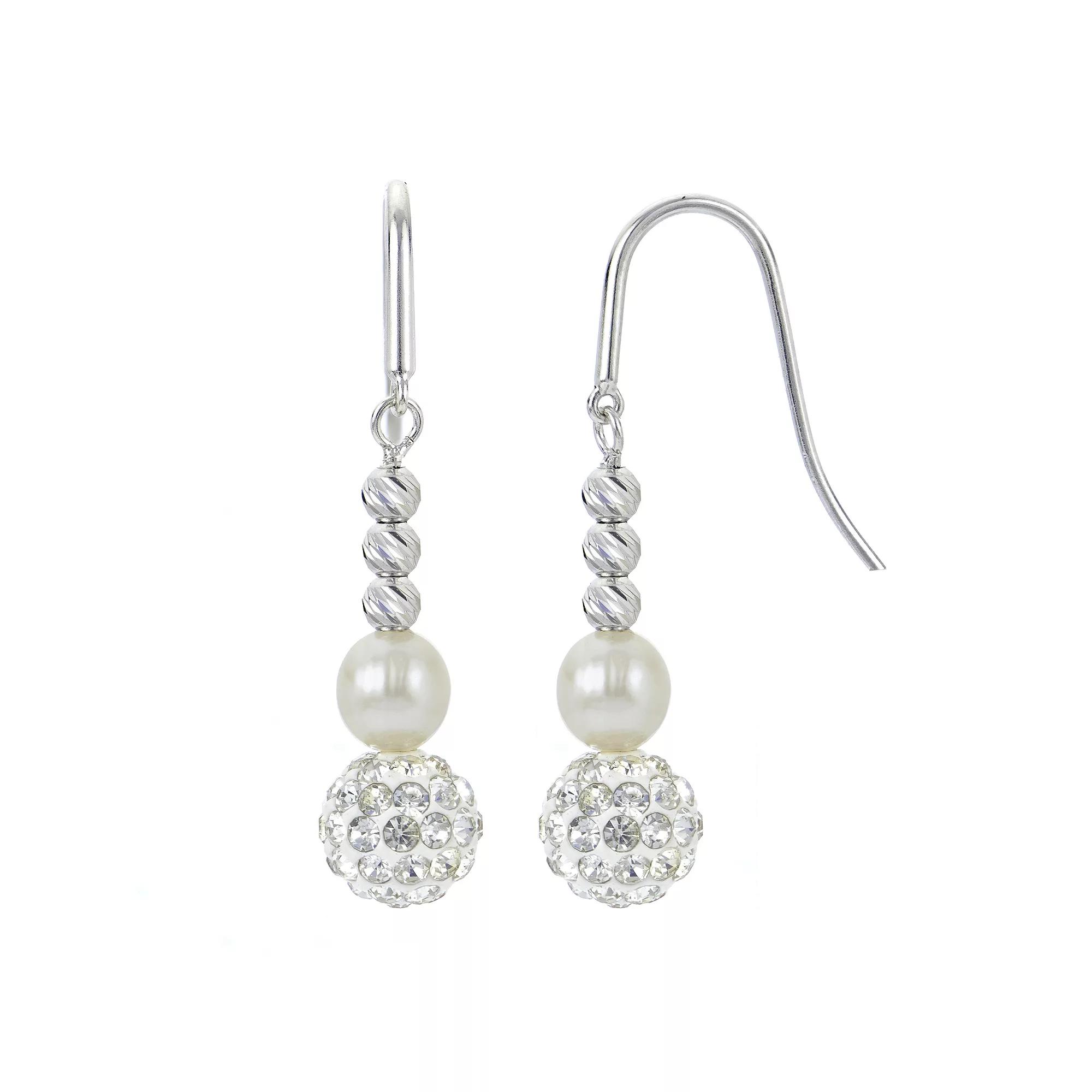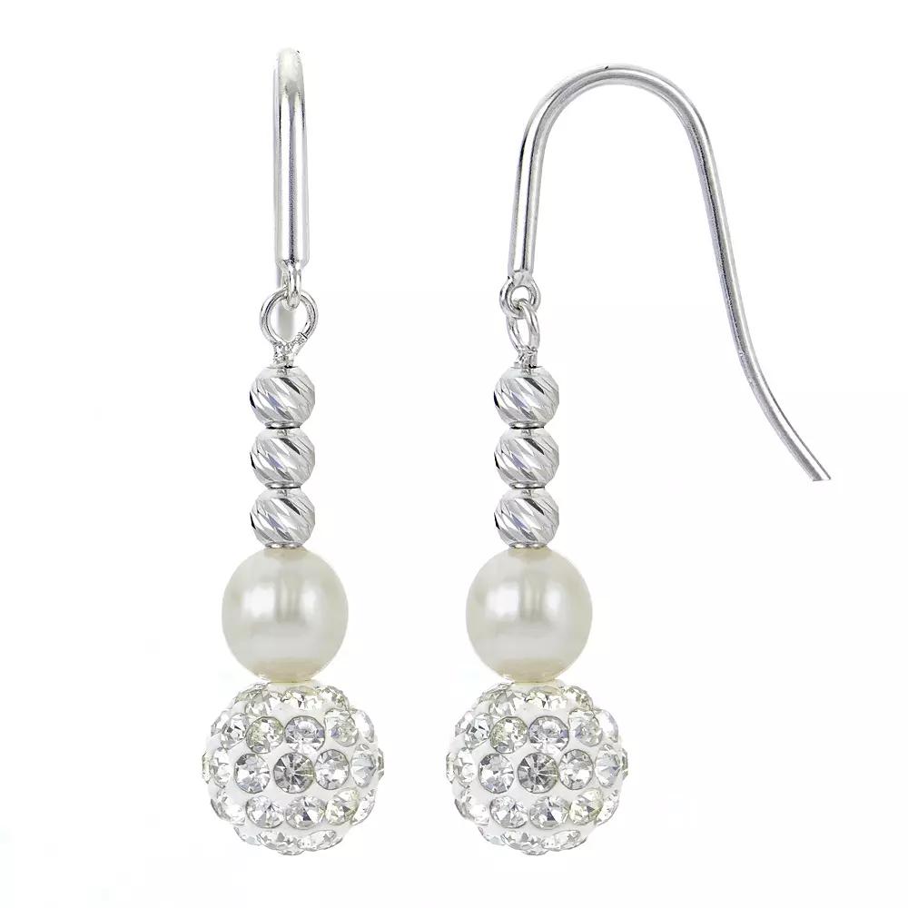 These PearLustre earrings feature beautiful freshwater cultured pearls with diamond-cut sterling silver beads and a sparkling clay and crystal ball. These PearLustre earrings feature beautiful freshwater cultured pearls with diamond-cut sterling silver beads and a sparkling clay and crystal ball. Nickel free Metal: sterling silver Backings: fishhook Packaging: boxed Plating: rhodium Finish: polished Length: 1.6 in.CULTURED PEARL DETAILS Type: freshwater Shape: near round Size: 6-7 mm Color: white Gemstones may have been treated to enhance their appearance. Special care may be required. Please visit our Gemstone Treatment & Special Care Guide for more information. Size: One Size. Gender: female. Age Group: adult.