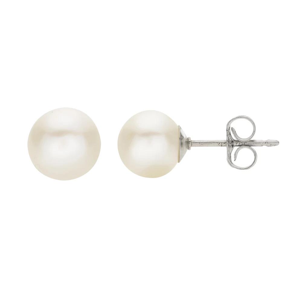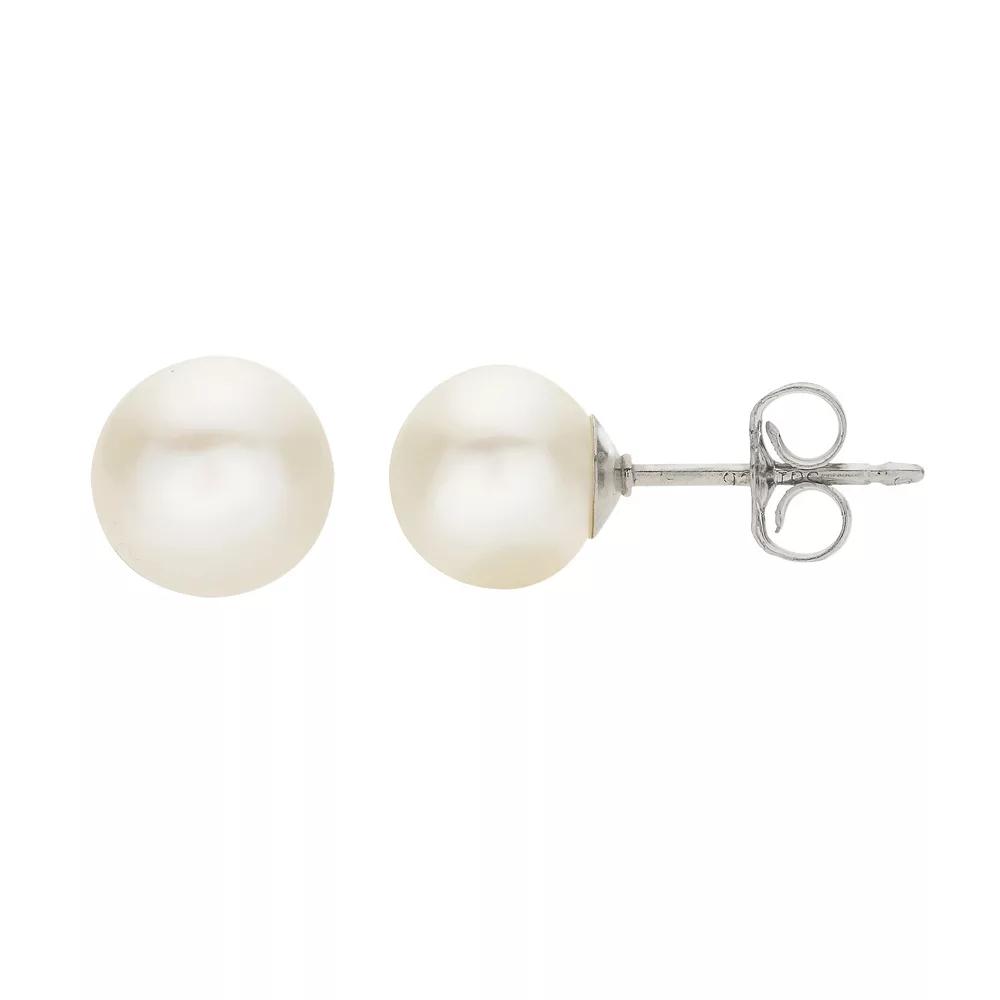 Enhance your outfit with these sophisticated freshwater cultured pearl stud earrings. Comes in a gift box.EARRING DETAILS Diameter: 8-8.5 mm Backings: post Metal: sterling silver Plating: rhodium CULTURED PEARL DETAILS Type: freshwater Shape: round Size: 8-8.5 mm Color: white Gemstones may have been treated to enhance their appearance. Special care may be required. Please visit our Gemstone Treatment & Special Care Guide for more information. Size: One Size. Gender: female. Age Group: adult.