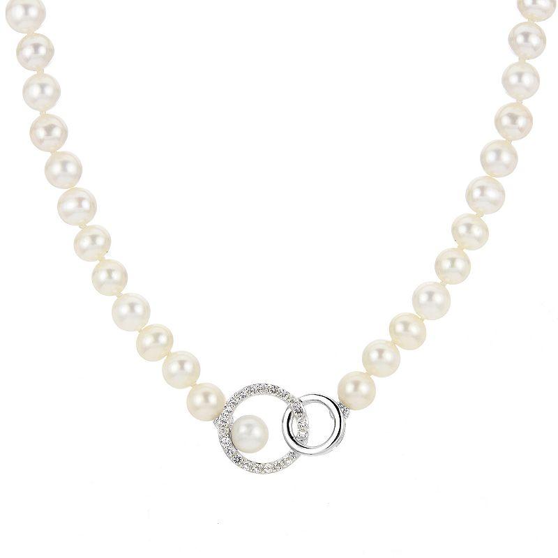 Adorned with near-round freshwater cultured pearls, this PearLustre necklace sparkles with white topaz accents. Adorned with near-round freshwater cultured pearls, this PearLustre necklace sparkles with white topaz accents. Clasp: lobster-claw Nickel free Metal: sterling silver Chain length: 18 in. Pendant width: 1.9 in. Packaging: boxed Plating: rhodium Finish: polishedSTONE DETAILS Stone type: white topaz Total weight: 1/3 ct. Shape: round Setting: paveCULTURED PEARL DETAILS Type: freshwater Shape: near round Size: 5-6 mm Color: white Gemstones may have been treated to enhance their appearance. Special care may be required. Please visit our Gemstone Treatment & Special Care Guide for more information. Size: 18". Gender: female. Age Group: adult.