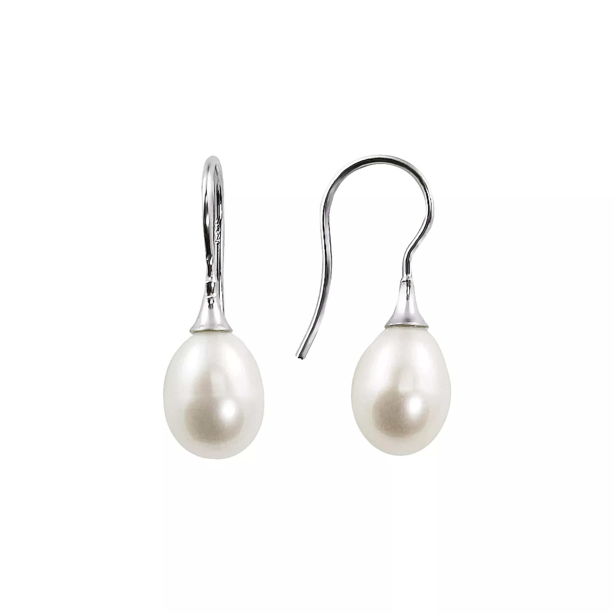 Chic, classic earrings. This lovely pair features freshwater, cultured pearls in a single, dropped design. And the lustrous oval shapes are polished to an elegant finish. With sterling silver, shepherd-hook backings that slide on to ensure a comfortable fit. Plus, they come in a white leatherette box for easy gift giving and storage. Details: 8- x 9-mm cultured pearls Pierced Sterling silver Size: One Size. Gender: female. Age Group: adult.