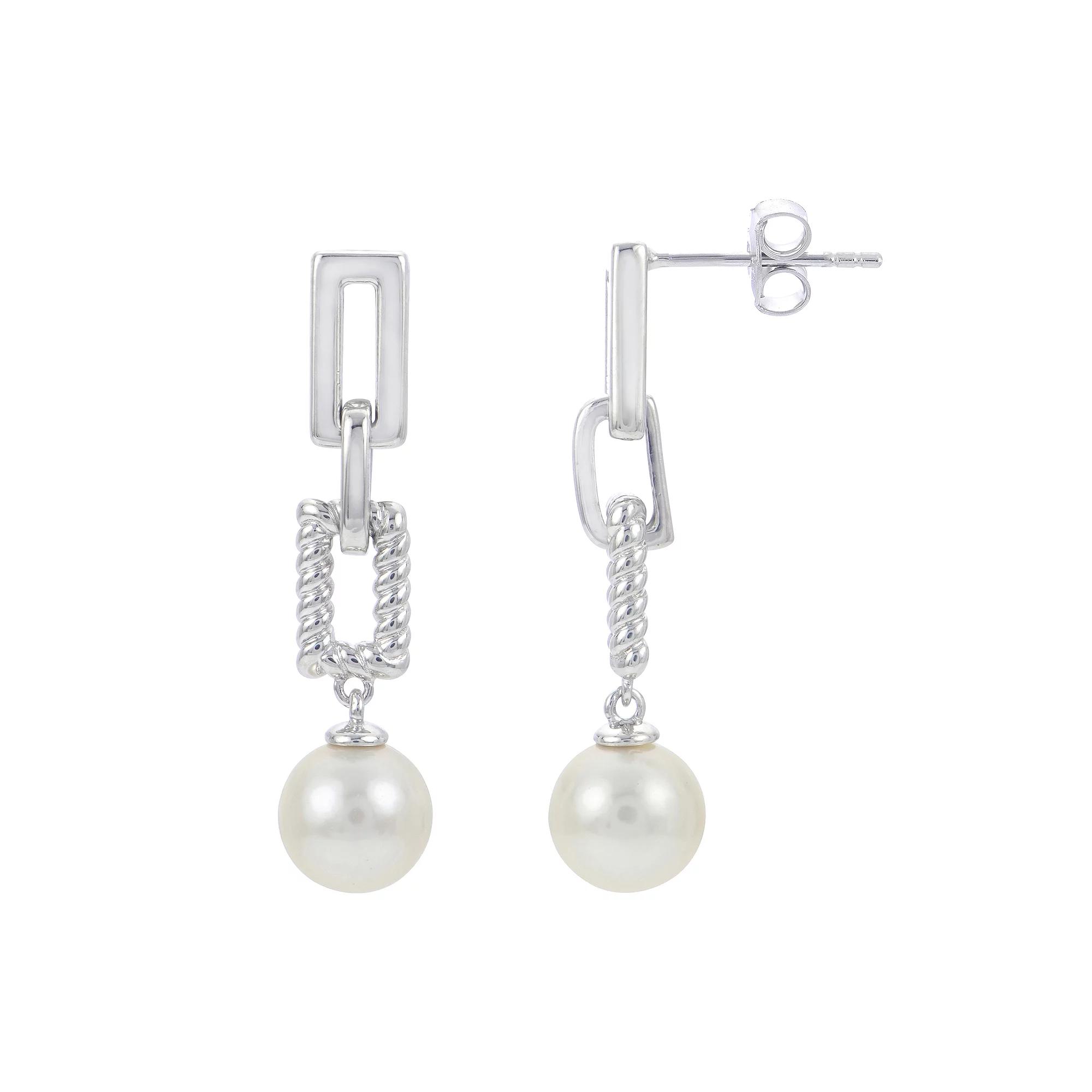 Contemporary style meets timeless elegance with these modern geometric dangle earrings. Lustrous white 8-8.5 mm cultured freshwater pearls are set beneath smooth and textured rope sterling silver paperclip links to create a fashion forward look that will elevate any ensemble. | Pearlustre By Imperial Sterling Silver Freshwater Pearl Earring, No Size