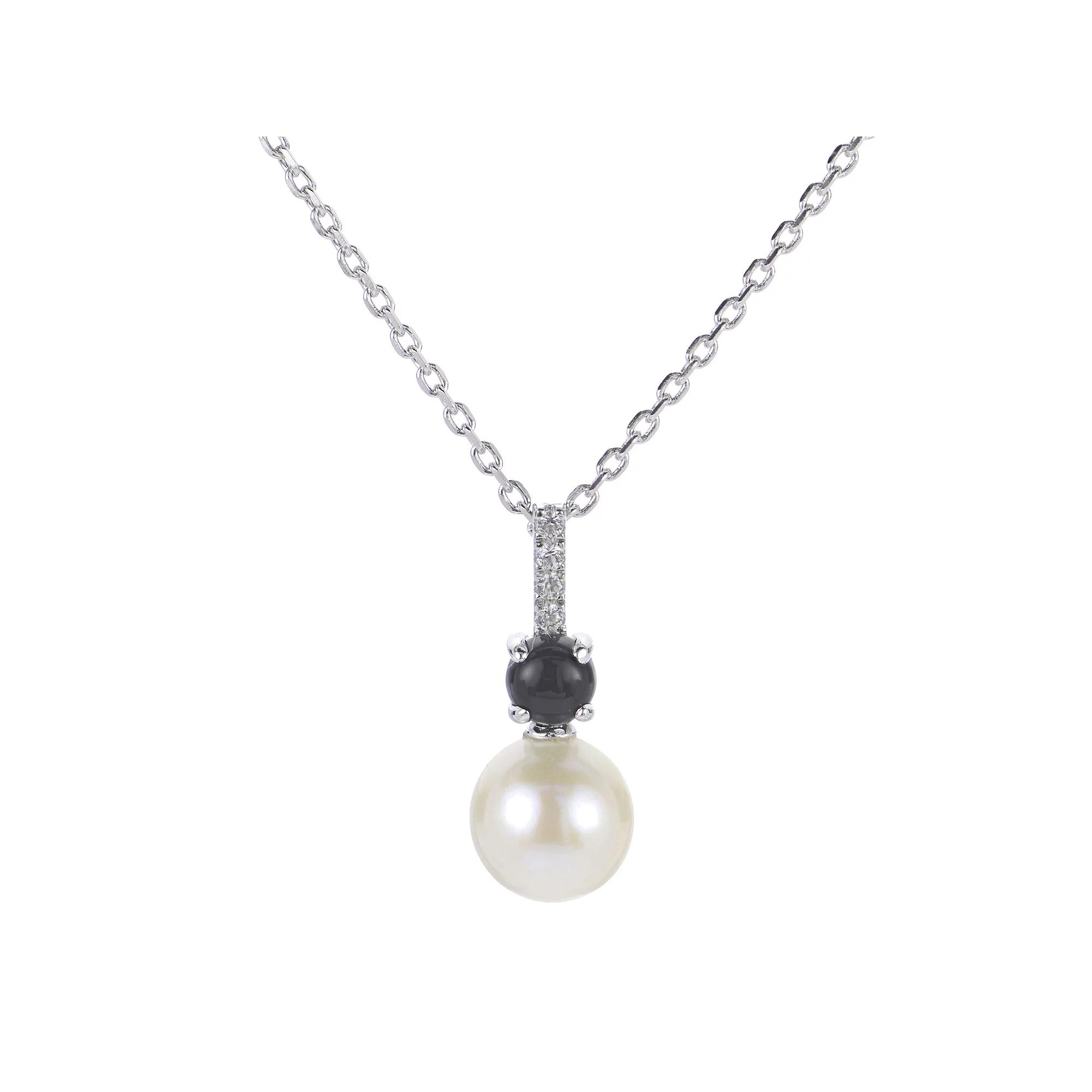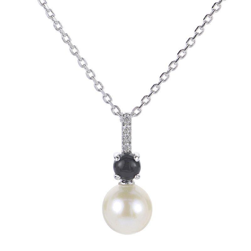 PearLustre by Imperial Sterling Silver Freshwater Cultured Pearl, Lab-Created White Sapphire & Black Onyx Pendant Necklace, Women's,