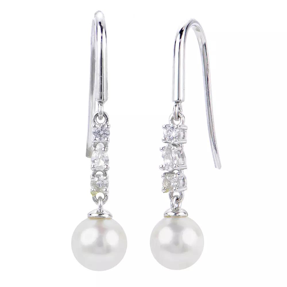 These PearLustre by Imperial freshwater cultured pearl and lab-grown white sapphire drop earrings complete any outfit. These PearLustre by Imperial freshwater cultured pearl and lab-grown white sapphire drop earrings complete any outfit. Length: 1.1 in. Backings: arched wire Metal: sterling silver Plating: rhodium Finish: polished Packaging: boxed Nickel freeSTONE DETAILS Stone type: lab-created white sapphire Total weight: 1/3 ct. Shape: pear, round Setting: prongCULTURED PEARL DETAILS Type: freshwater Size: 6-6.5 mm Shape: near round Color: white Gemstones may have been treated to enhance their appearance. Special care may be required. Please visit our Gemstone Treatment & Special Care Guide for more information. Image(s) may be enlarged to show detail. Size: One Size. Gender: female. Age Group: adult.