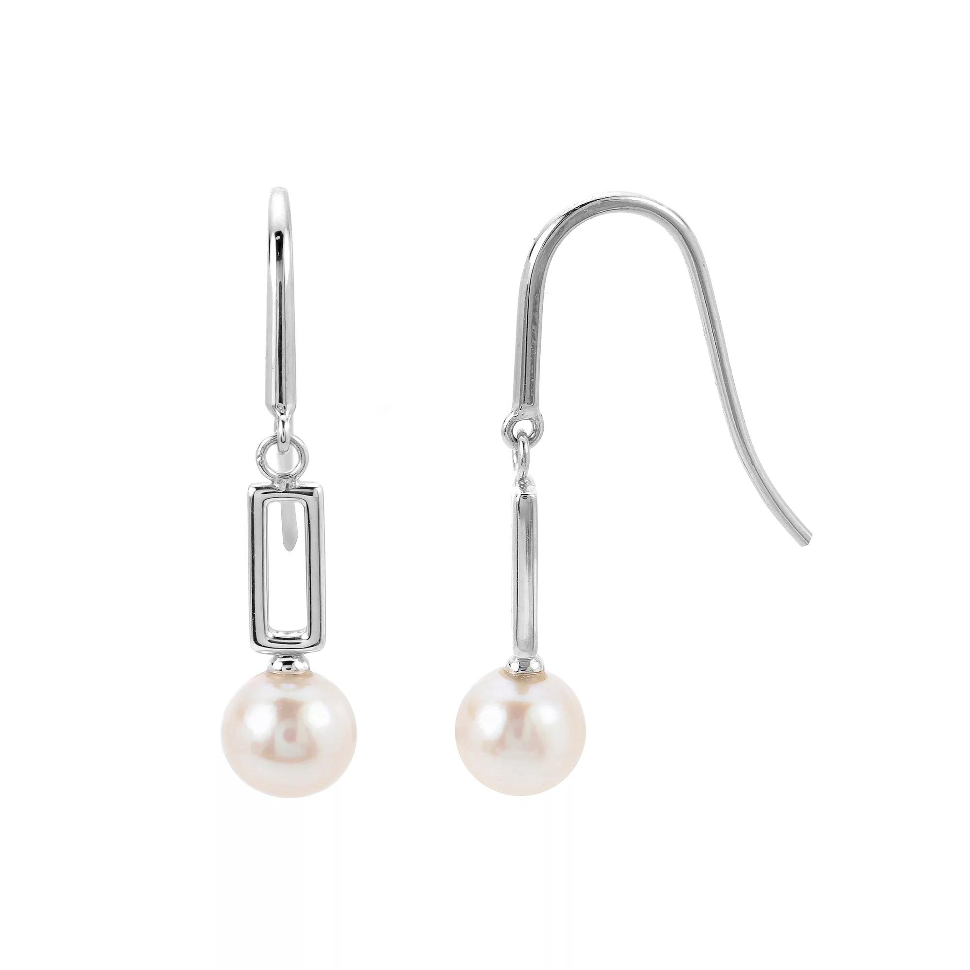 Adorn your ears with these chic pearl paperclip link earrings. Created in cool sterling silver, each earring showcases a lustrous 6-6.5 mm off-round shape cultured freshwater pearl. | Pearlustre By Imperial Sterling Silver Freshwater Pearl Earring