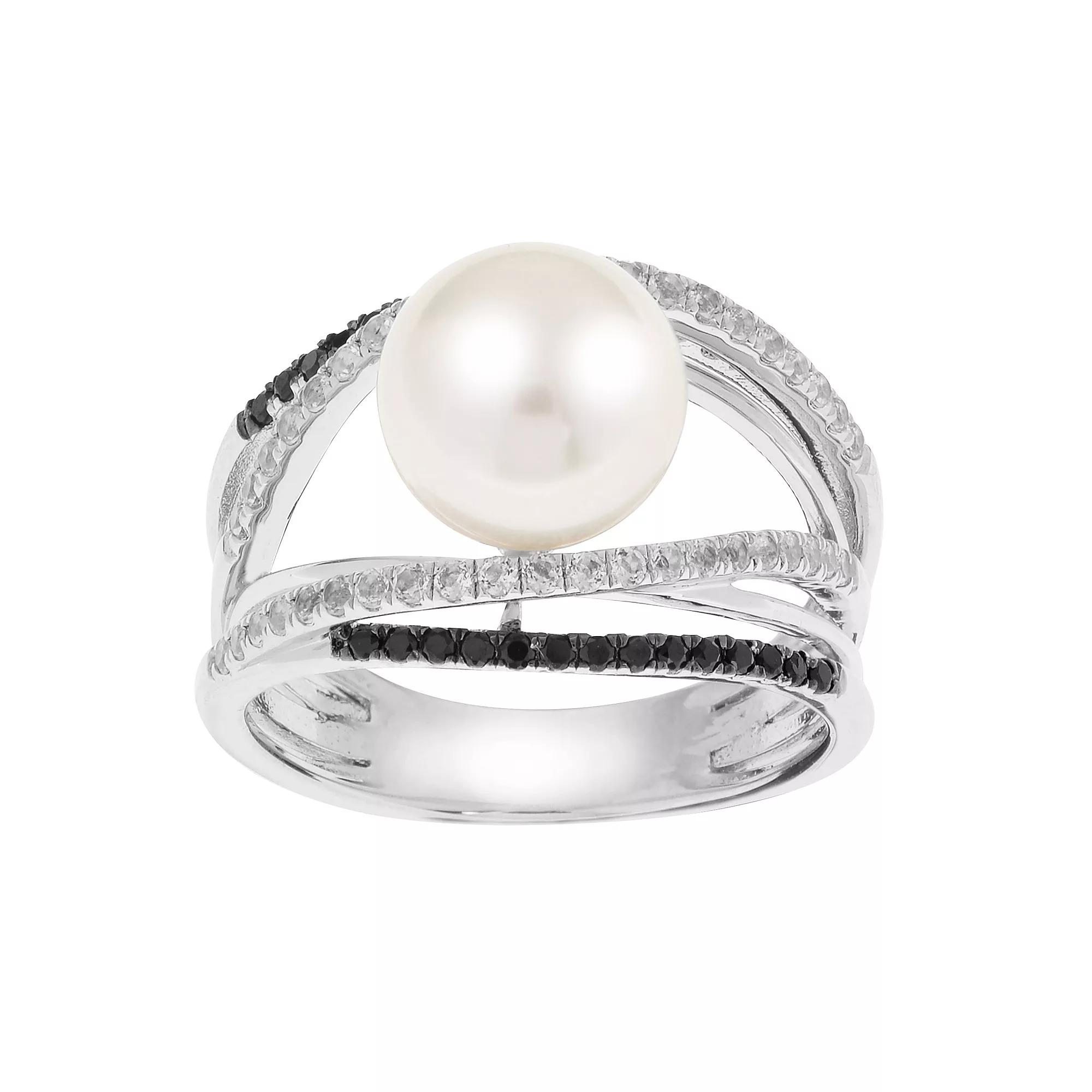 Make a fashion statement with this stunning PearLustre by Imperial Sterling Silver Freshwater Cultured Pearl, White Topaz & Black Spinel Split Band Ring. Click on this JEWELRY & WATCHES GUIDE to learn about fit, styles, materials and more! Make a fashion statement with this stunning PearLustre by Imperial Sterling Silver Freshwater Cultured Pearl, White Topaz & Black Spinel Split Band Ring. Click on this JEWELRY & WATCHES GUIDE to learn about fit, styles, materials and more! FEATURES Width: 13 mm Shank style: tapered Band fit: flat Nickel free Metal: sterling silver Plating: rhodium Finish: polished Packaging: boxed ImportedSTONE DETAILS Stone type: spinel, white topaz Total weight: 5/8 ct. Shape: round Setting: paveCULTURED PEARL DETAILS Type: freshwater Diameter: 9-9.5 mm Shape: round Color: white Gemstones may have been treated to enhance their appearance. Special care may be required. Please visit our Gemstone Treatment & Special Care Guide for more information. Gender: female. Age Group: adult.