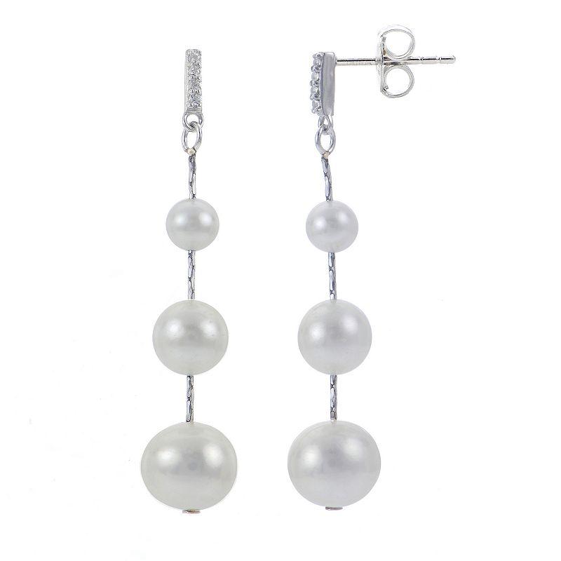 Decorated with freshwater cultured pearls in a graduated design, these PearLustre by Imperial linear drop earrings give you effortless elegance. Decorated with freshwater cultured pearls in a graduated design, these PearLustre by Imperial linear drop earrings give you effortless elegance. Metal: sterling silver Backings: post Packaging: boxed Plating: rhodium Finish: polished Length: 1.5 in.STONE DETAILS Stone type: white topaz Total weight: less than 1/10 ct. Shape: round Setting: paveCULTURED PEARL DETAILS Type: freshwater Size: 4 mm - 9 mm Shape: near round Color: white Gemstones may have been treated to enhance their appearance. Special care may be required. Please visit our Gemstone Treatment & Special Care Guide for more information. Please note, due to the high value of this item, a signature may be required upon delivery. Size: One Size. Gender: female. Age Group: adult.
