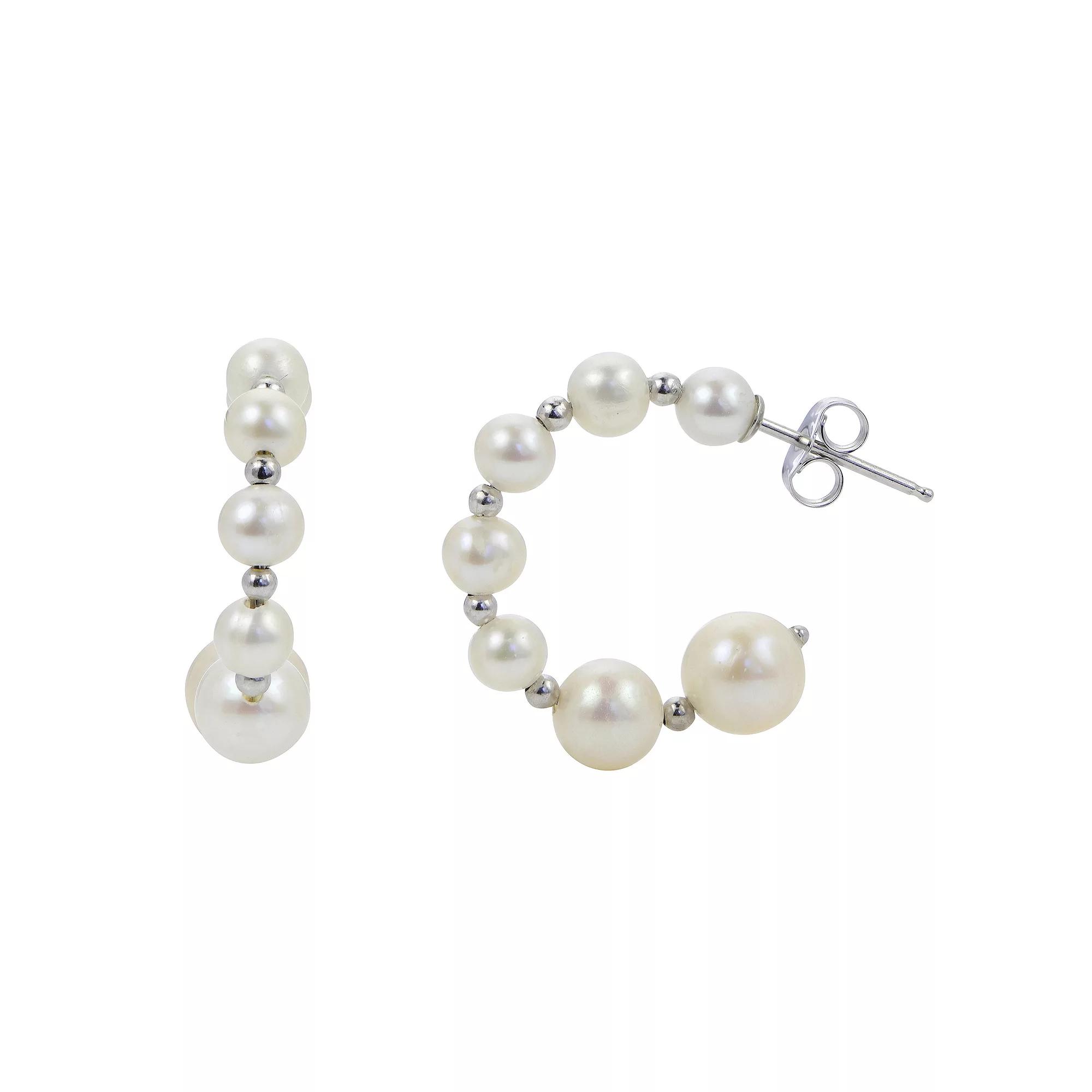 PearLustre by Imperial Sterling Silver Graduated Freshwater Cultured Pearl & Bead Hoop Earrings, Women's Product Image