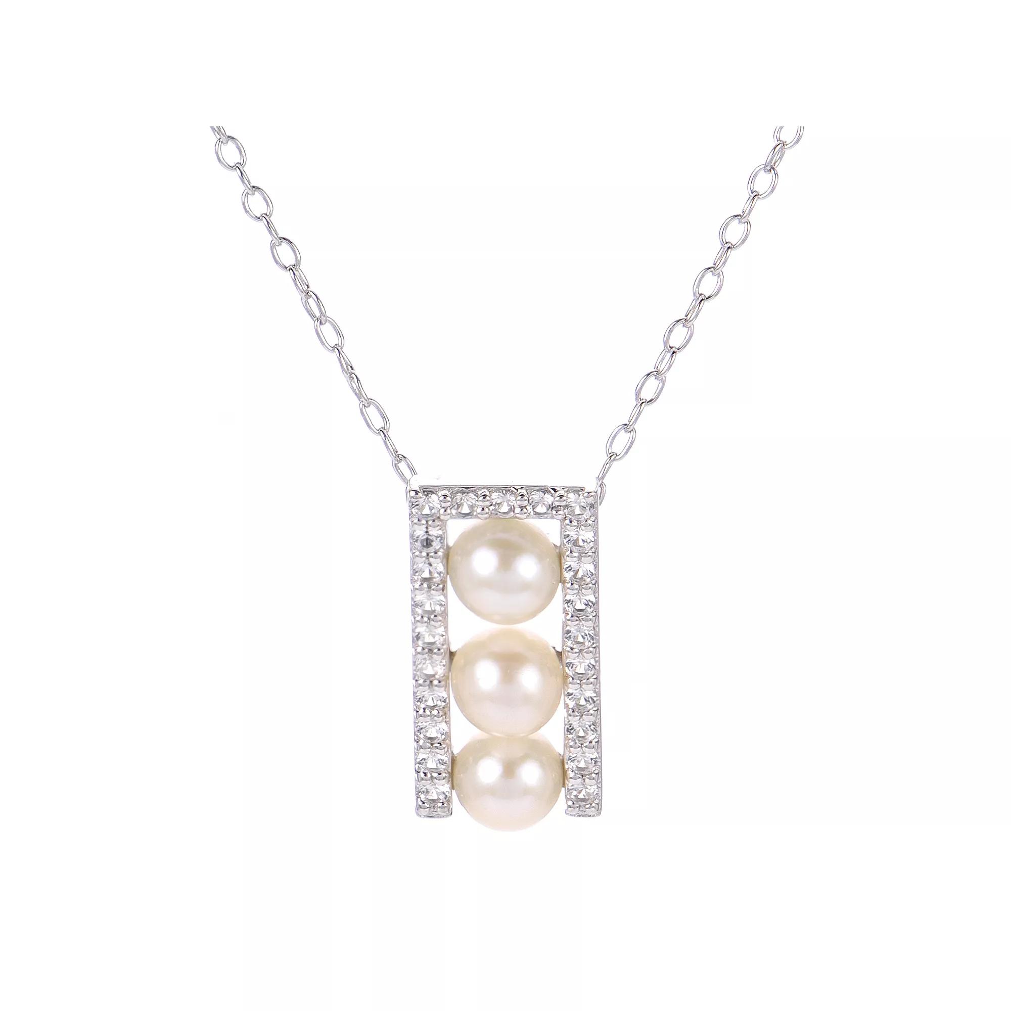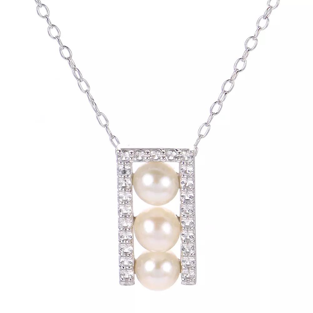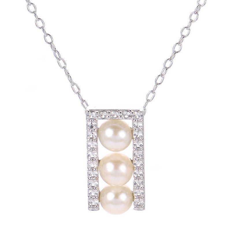 Decorated with a trio of lustrous freshwater cultured pearls and lab-created white sapphire accents, this elegant PearLustre by Imperial pendant beautifully complements your attire. Decorated with a trio of lustrous freshwater cultured pearls and lab-created white sapphire accents, this elegant PearLustre by Imperial pendant beautifully complements your attire. Clasp: spring ring Metal: sterling silver Chain length: 18 in. + 2-in. extender Packaging: boxed Plating: rhodium Finish: polished Pendant size: 0.6L x 0.3W Chain type: cableSTONE DETAILS Stone type: lab-created white sapphire Total weight: 1/5 ct. Shape: round Setting: paveCULTURED PEARL DETAILS Type: freshwater Size: 4.5 mm - 5mm Shape: near round Color: white Gemstones may have been treated to enhance their appearance. Special care may be required. Please visit our Gemstone Treatment & Special Care Guide for more information. Size: 18. Gender: female. Age Group: adult.