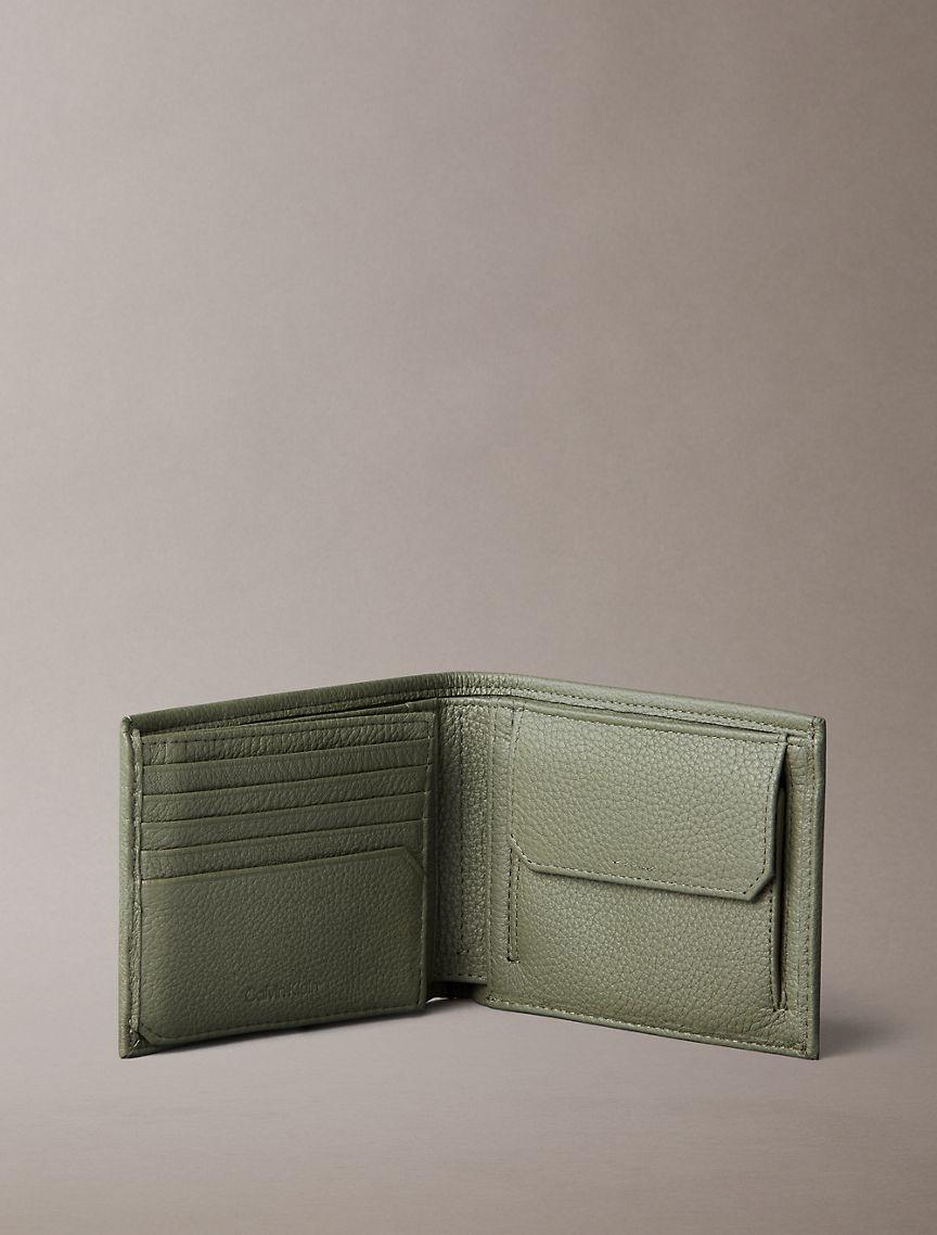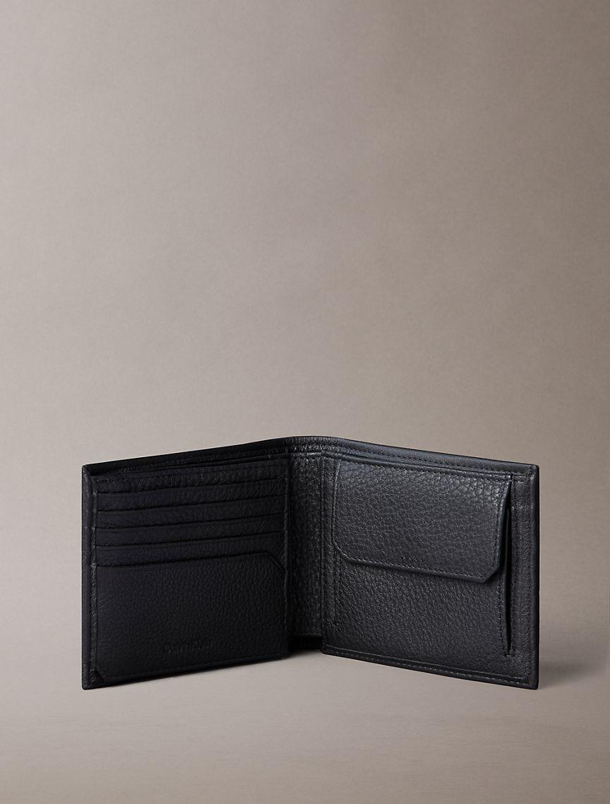 Pebble Grain Leather Trifold Wallet with Coin Pouch