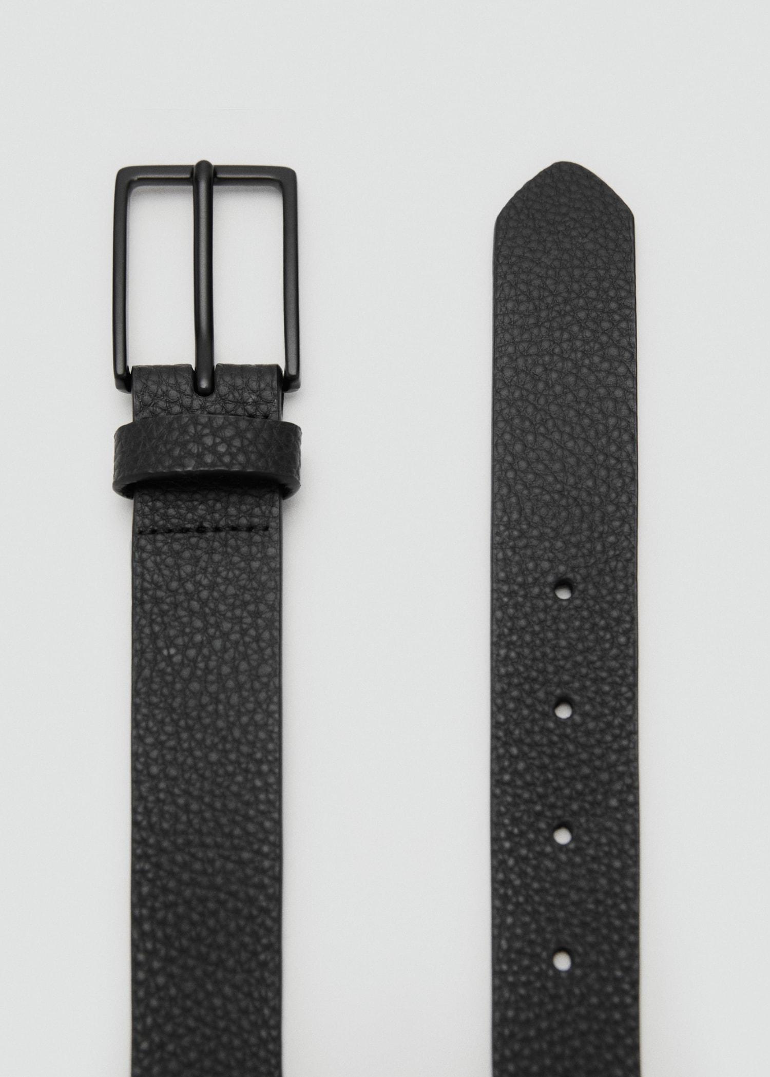 100% bovine leather. Inner part with with a flamed finish. Tone-on-tone metallic buckle. Perforation for free size adjustment in MANGO stores. 31.5x1.57 in