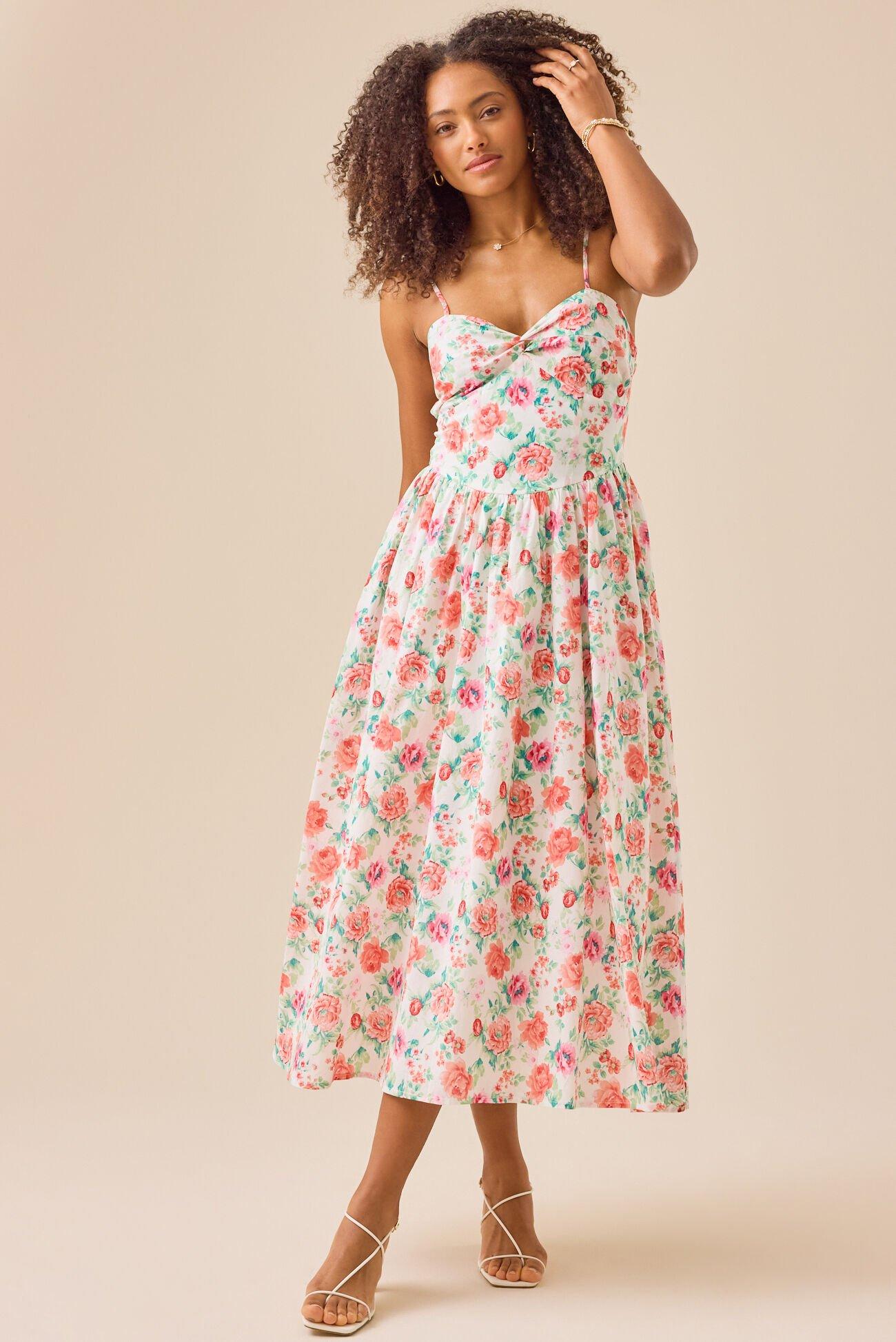 Elegant and romantic, this floral maxi dress features a chic twist-front detail for a flattering touch. Flowing and feminine, it is perfect for any occasion that calls for effortless charm.