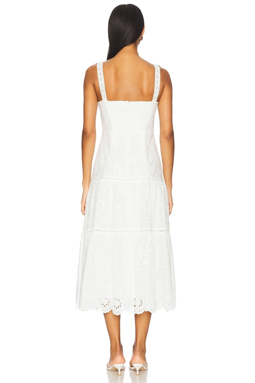 Self: 100% cottonLining: 100% rayon. Dry clean only. Fully lined. Hidden back zip closure. Boned bodice and underwire cups. Scalloped trim. Heavyweight eyelet fabric. Made in China. Revolve Style No. ASTR-WD755. Manufacturer Style No. ACDR102727S.