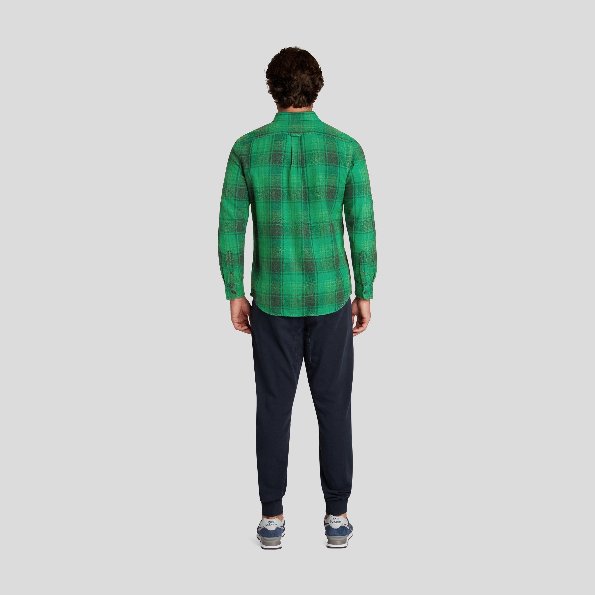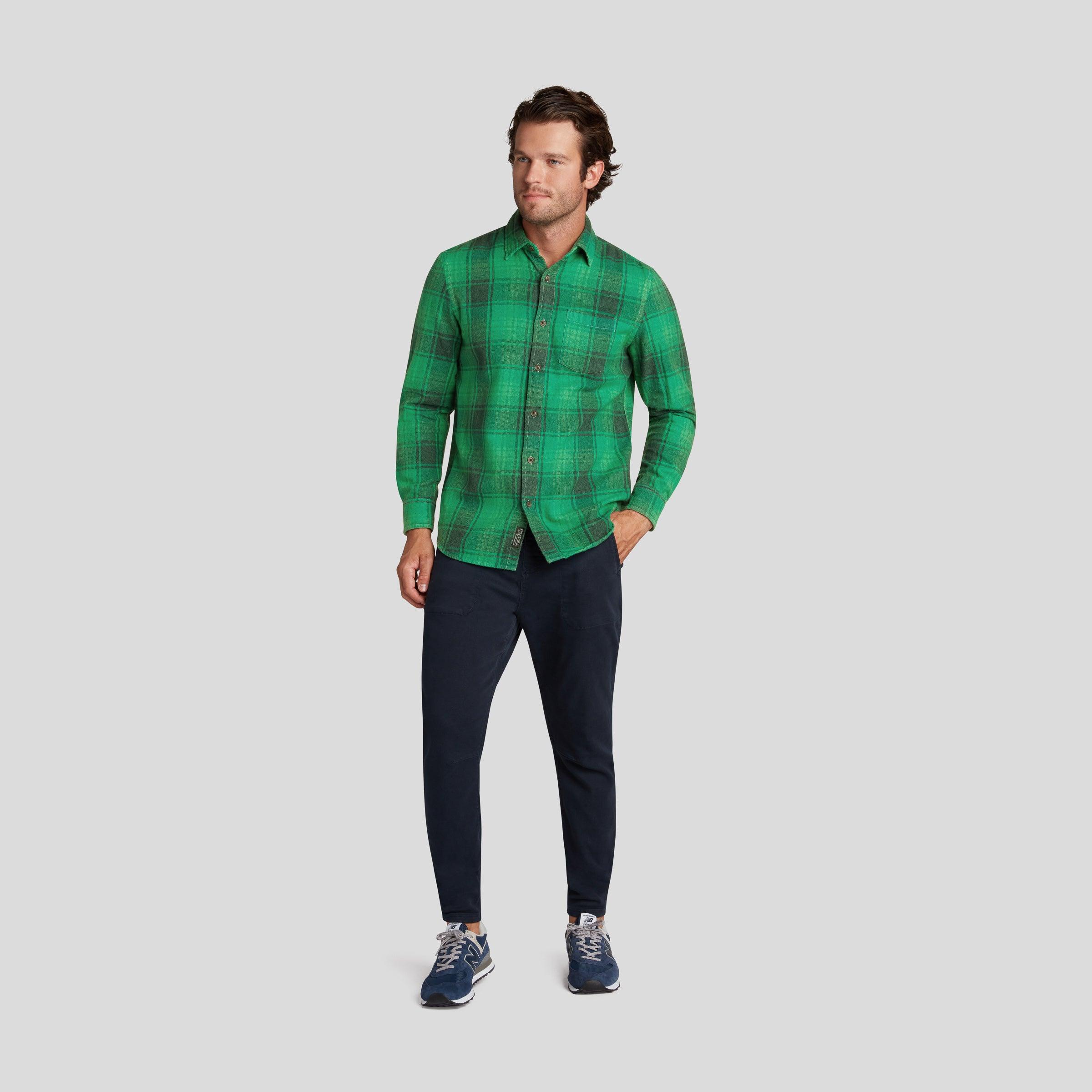 The Jaspe is our most luxurious flannel twill to date. A little lighter in weight, these super softies are crafted in a 6 ounce fabric made with 3-ply twisted jaspe yarns and sueded to perfection. Jaspe is a weaving technique where we blend several colors of yarn to create high-lows, depth and richness. These subtle tonal plaids can be worn casually with denim and chinos or elevated under a casual blazer. What makes them even more special? We design all of our own plaids. We weave our own fabric. The Model is also wearing: Hybrid Stretch Jogger - Graphite Blue. Model: Jacob is wearing size medium and is 6'2". ----Details---- Spread collar Single patch pocket Chambray detailing in yoke, placket and gusset 2-ply twisted jaspe yarn 100% Cotton Imported ----Materials---- 100% Cotton ----Size & Fit---- Measuring Method: All measurements are in inches and based on a “flat” garment, as shown below. For comparison with one of your existing garments, please lay garment on a flat surface and follow the key measurement points. For chest and neck, if you double the flat measurement, you will get close to the full body measurement. ----Care---- Machine Wash Cold Separately Do Not Soak Before Washing Do Not Bleach Remove Promptly Tumble Dry Low Or Hang Dry In Shaded Area Cool Iron If Necessary