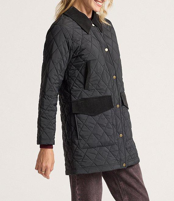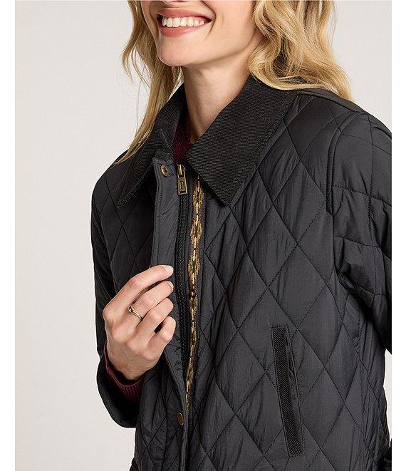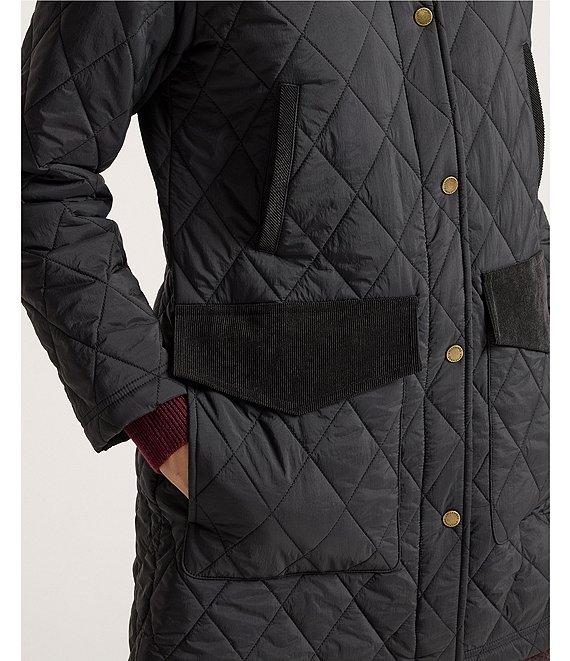 From Pendleton, this coat features: Quilted fabrication Field coat silhouette Corduroy club collar neckline Long sleeves Front flap pockets Side pockets Eco friendly crinkle Recycled fiber fill Water resistant Mid weight Relaxed fit Fully lined Straight hemline Snap front closure Approx. 33" length Nylon/crinkle tech Machine wash Imported.