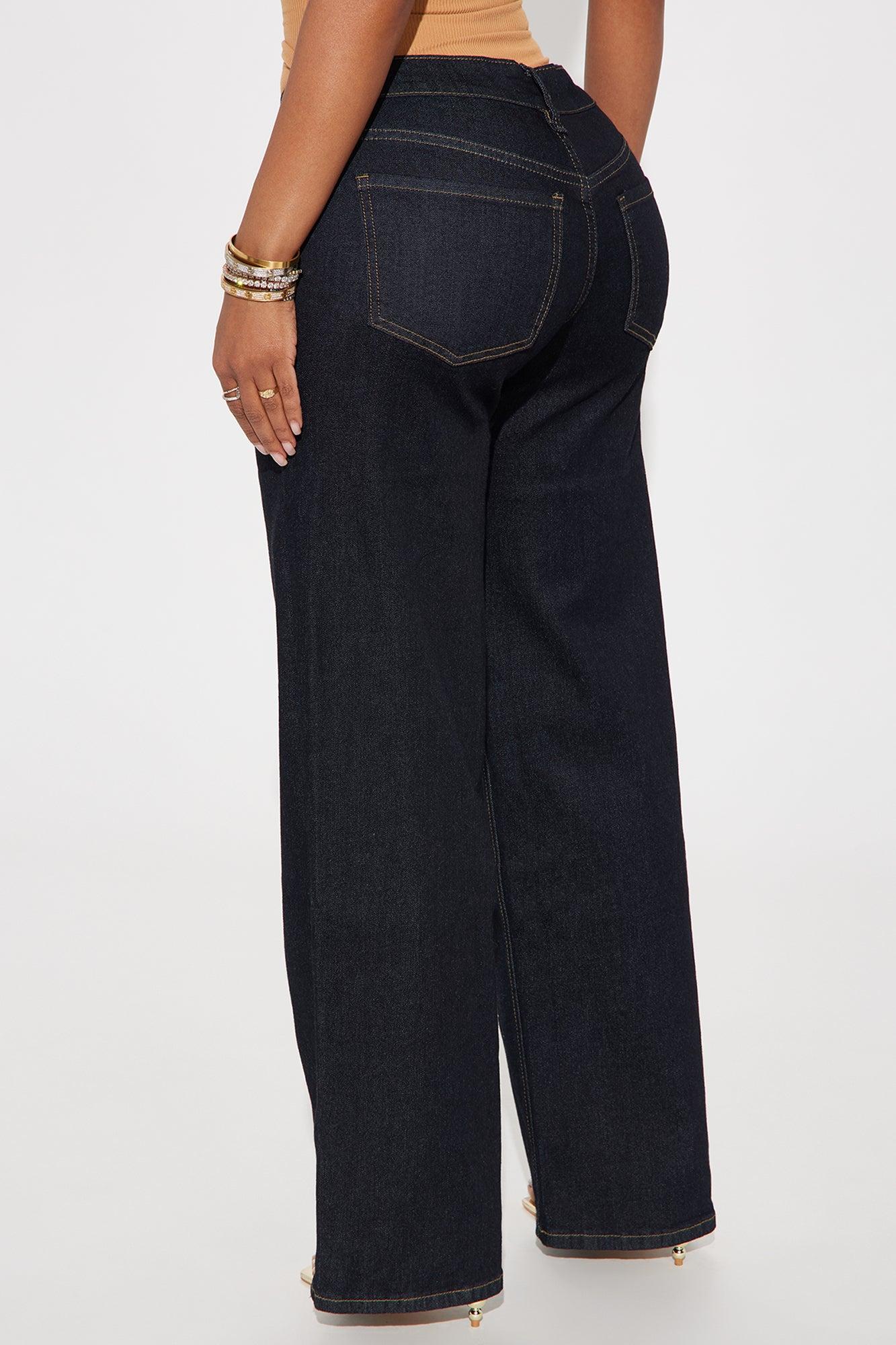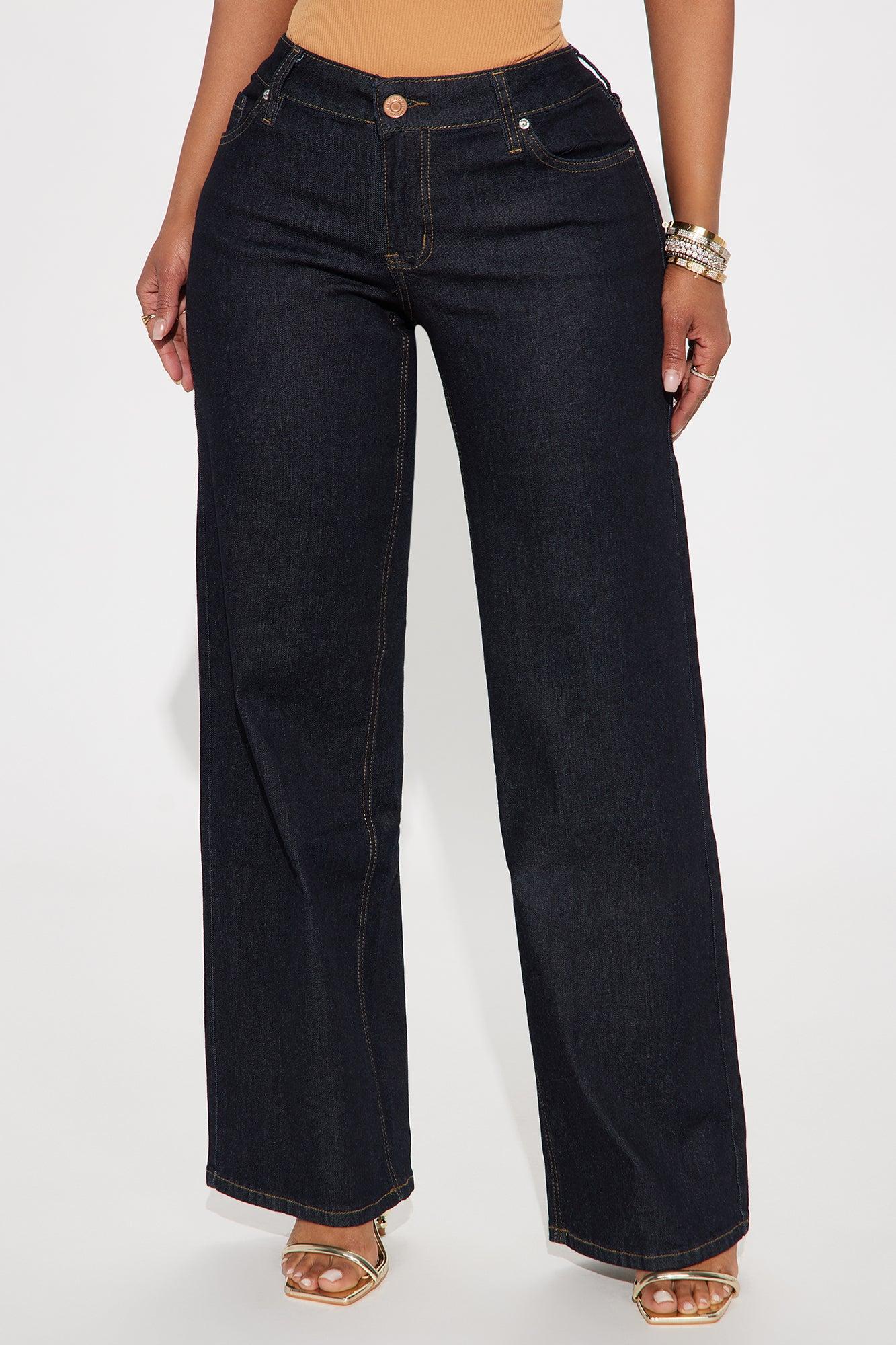 Available In Dark Wash. Wide Leg Jean 5 Pocket 8.5" Low Rise 32" Inseam Medium Stretch Disclaimer: Due To The Specialized Wash, Each Garment Is Unique. 70% Cotton 27% Polyester 2% Spandex 1% Other Fiber Imported