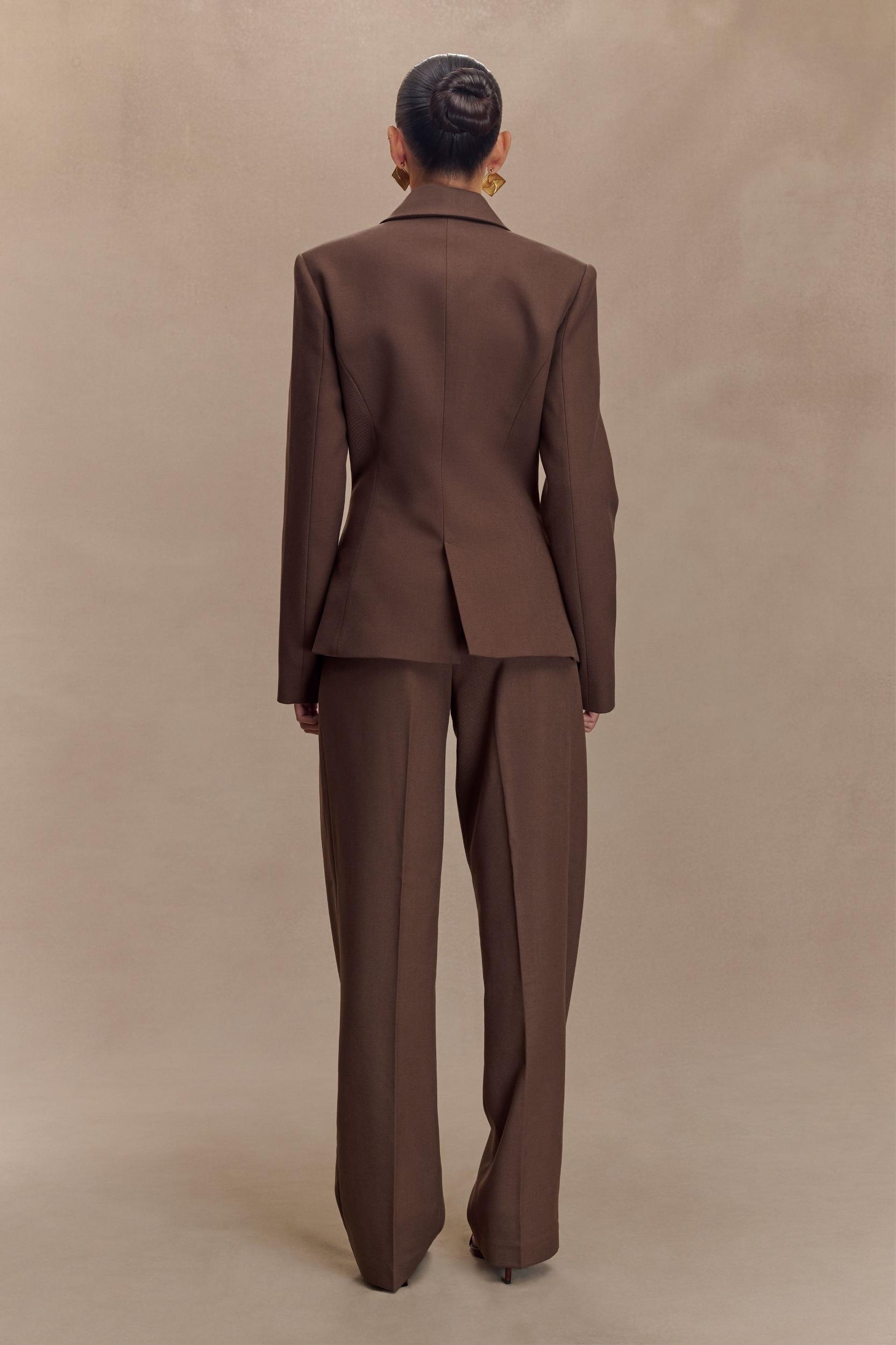 Versatile day to night. Discover the epitome of elegance and sophistication with the PENELOPE Pleated High Waisted Pants. Designed to flatter, these high-waisted trousers feature a fly front with a secure trouser hook closure, ensuring a sleek and smooth fit. The front pleat details add a touch of refinement, while the functional front pockets provide practicality without compromising style. The non-functional back pockets maintain a clean, streamlined appearance. With their wide-leg silhouette, these pants exude a timeless charm, making them a perfect match for the Penelope Suiting Sleeveless Blazer. Together, they create a commanding and stylish ensemble, ideal for both professional and formal settings.
