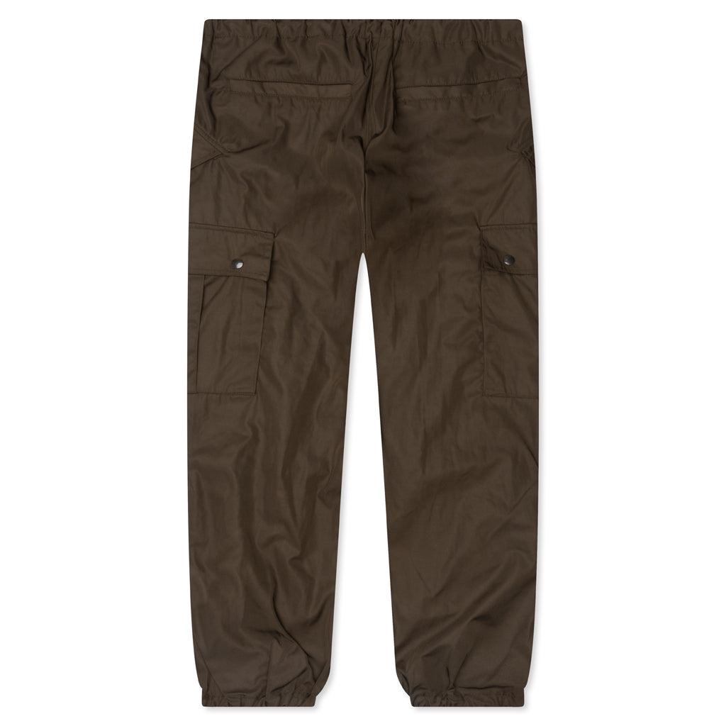 The Pentin Pants in Khaki, from Dries Van Noten are cargo pants with a loose fit design, crafted from 100% polyester with a water-repellent finish. The straight-leg silhouette is complemented by side flap and cargo pockets, along with a back welt pocket. The drawstring waistband ensures a personalized fit. 100% Polyester. Water repellent Loose fit Straight leg Side flap and cargo pockets and back welt pocket Drawstring waistband & Elasticated ankles Style No: 241-020944-8210-606