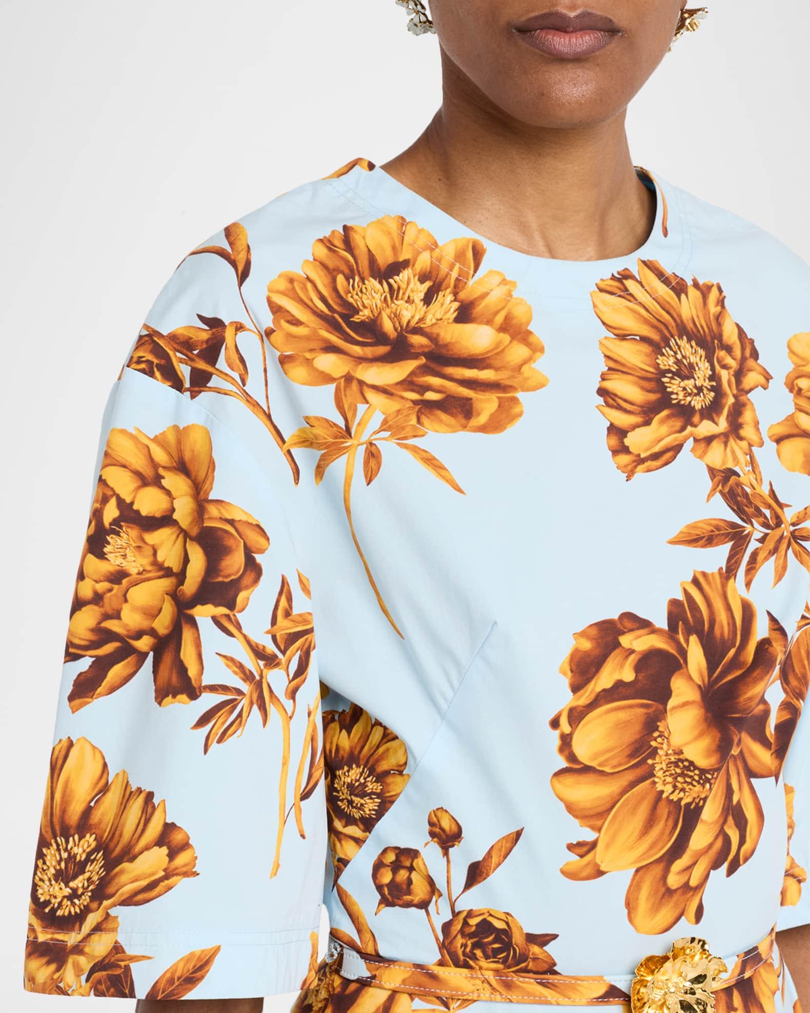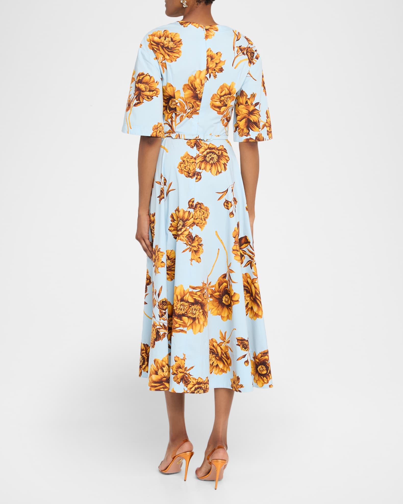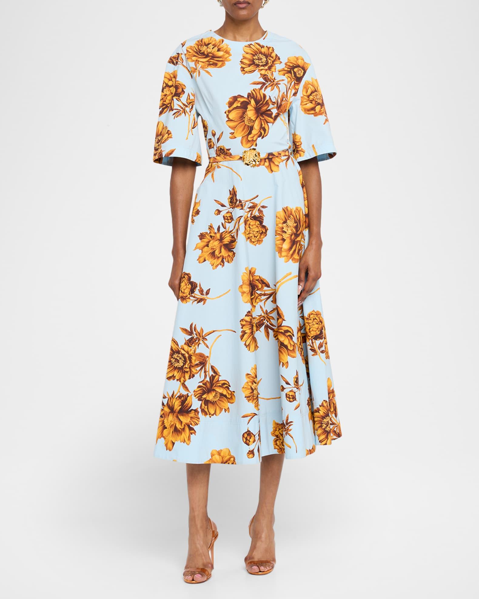 Peony Print Poplin Midi Dress